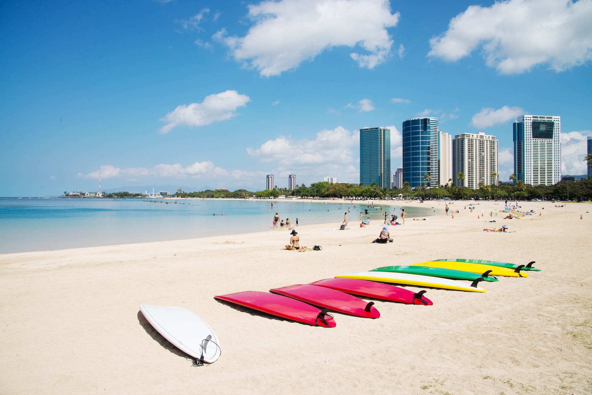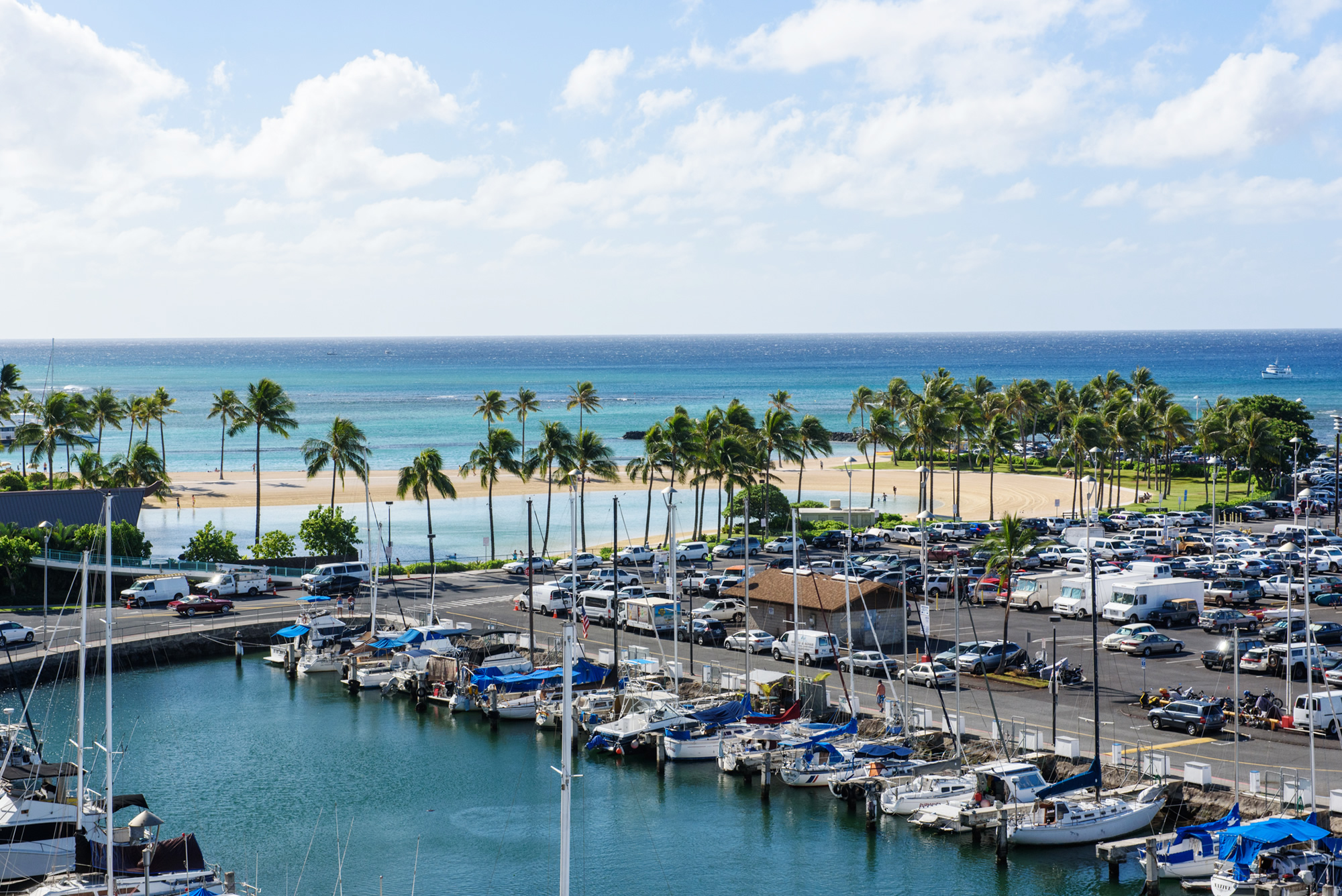 1日20ドルで、建物内の駐車場利用可 (駐車料金は変更される可能性あり)。レンタカーなしでも、アラモアナブルバード沿い(建物前)に公共のバス停があり、バスやトローリーを利用できます。