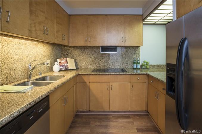 Upgraded low floor unit in 1350 Ala Moana. Perfect for that buyer who doesn’t want to be too high! This building is the “Grande Dame” of condos with perhaps the best location in Honolulu! Across from Ala Moana Shopping Center and across the Beach Park. Upgraded with SS appliances, new flooring throughout, new cabinets, counters and more! Unit comes with a storage locker. Building features a heated salt-water pool, spa, fitness, BBQ areas, party room, gardens and security. Recent upgrades to the elevators, hallways and doors…building looks fantastic! LOWEST PRICED FEE SIMPLE UNIT!