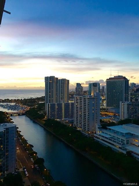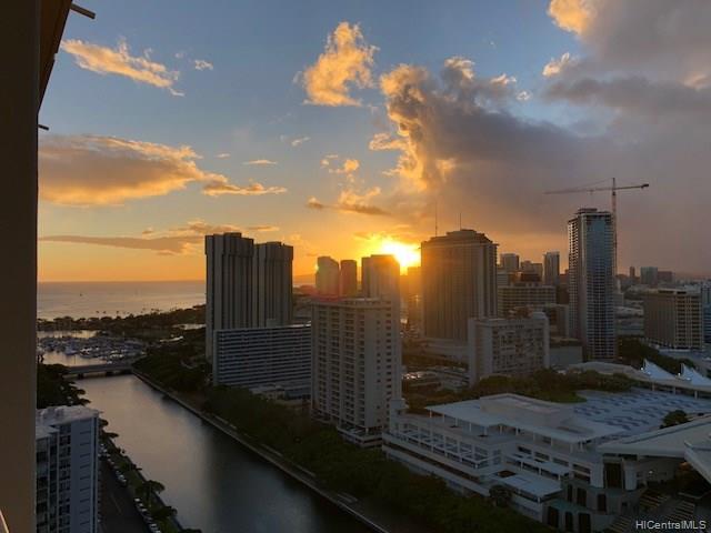 Treat yourself to spectacular sunsets from the 29th floor lanai of this breezy and spacious two bedroom unit conveniently situated at Ala Wai and Kalakaua- the very crossroads of Waikiki. Easy walk to Ala Moana Beach, Shopping Center, Hawaii Convention Center, and more. Assigned covered parking and tall storage unit included. Come by to experience the wide panorama for yourself!