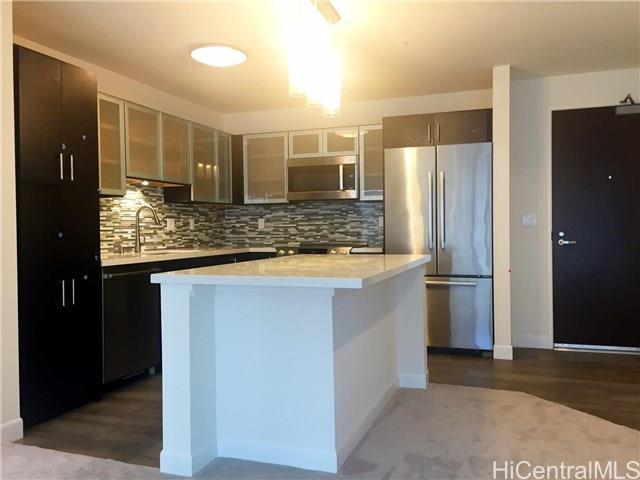 Large 2 bedroom unit in the on-going developed community in Kakaako! Home of the Salt complex, Down to Earth, H-Mart (coming soon) and more! 400 Keawe is a pet friendly building, low maintenance and in walking distance to restaurants, bars, biki rentals & bus lanes. Minutes away from downtown, Ala Moana and freeway. TENANT OCCUPIED until April 2019, but negotiable depending on Tenant’s home completion date. Great investment & perfect location!