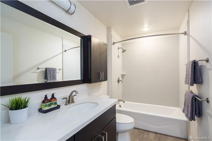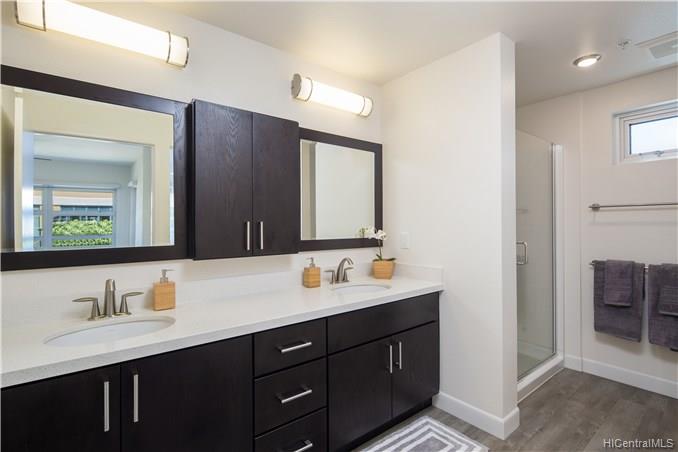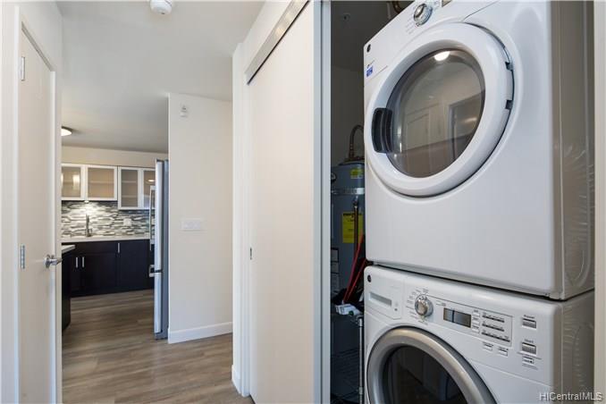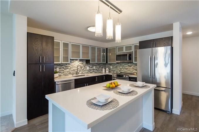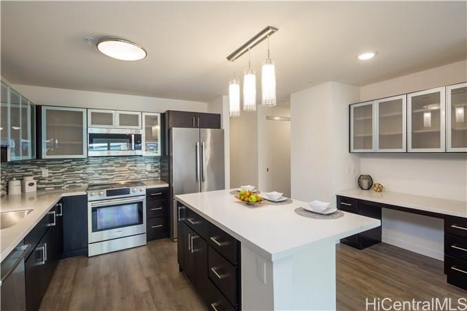 Amazing opportunity to own a piece of Kakaako with TWO PARKING STALLS! This well-maintained and move-in ready two bedroom, two bath unit at 400 Keawe features the largest two bedroom floor plan available and is a corner unit for added privacy. Stainless steel Bosch appliances, rich Espresso wood cabinetry, Quartz countertops, full-size front loading washer and dryer, and storage space throughout. Unit features upgraded roller shades and ceiling fans in all rooms. Come work, live and play nearby SALT at Our Kaka’ako, Honolulu’s epicenter for local culture, food, shopping and innovative events. Enjoy the convenience of Down To Earth at nearby Keauhou Place as well as the various restaurants and retail located on the ground level of 400 Keawe.