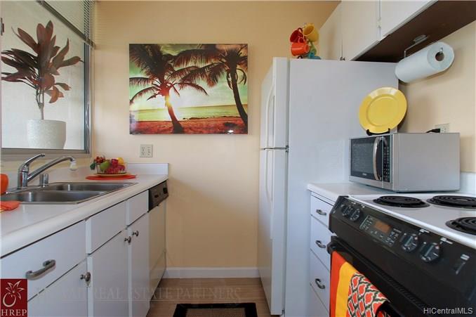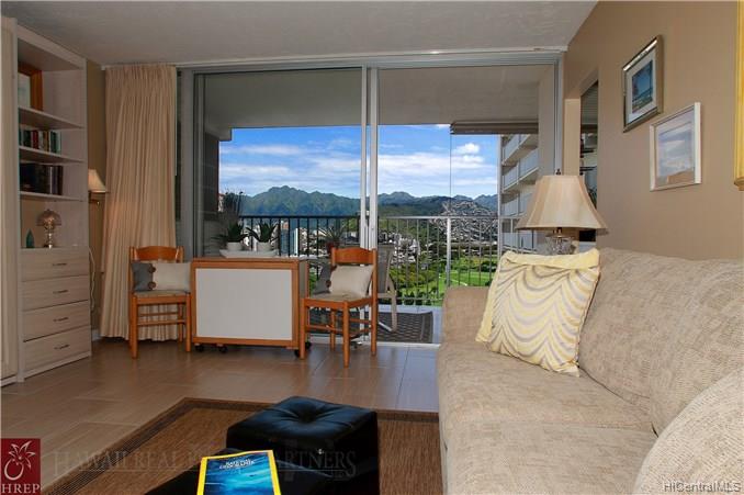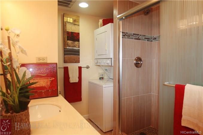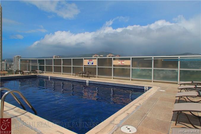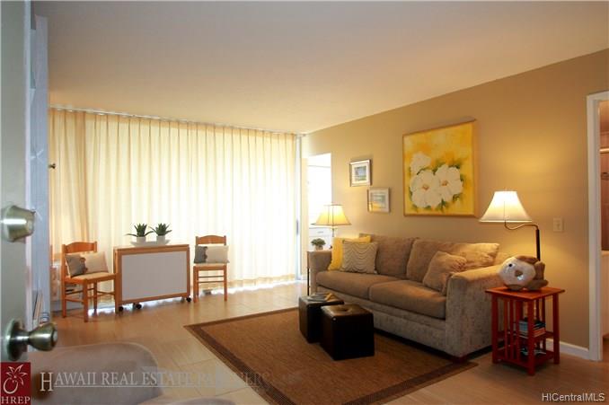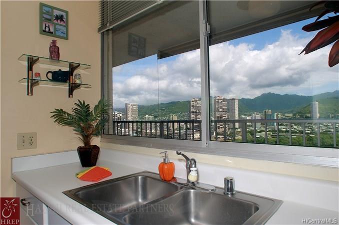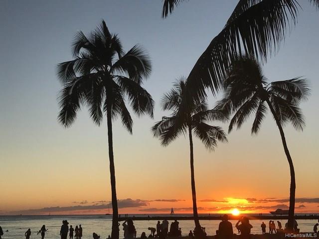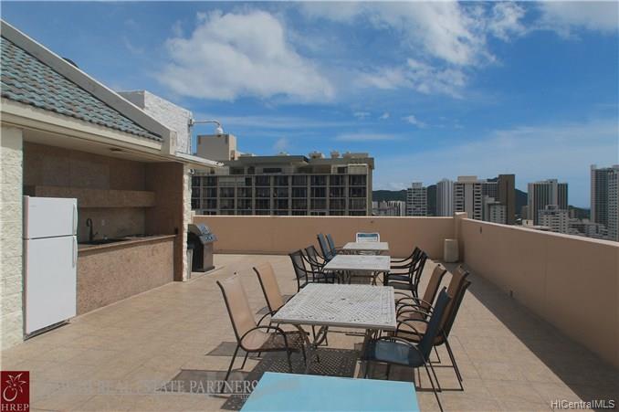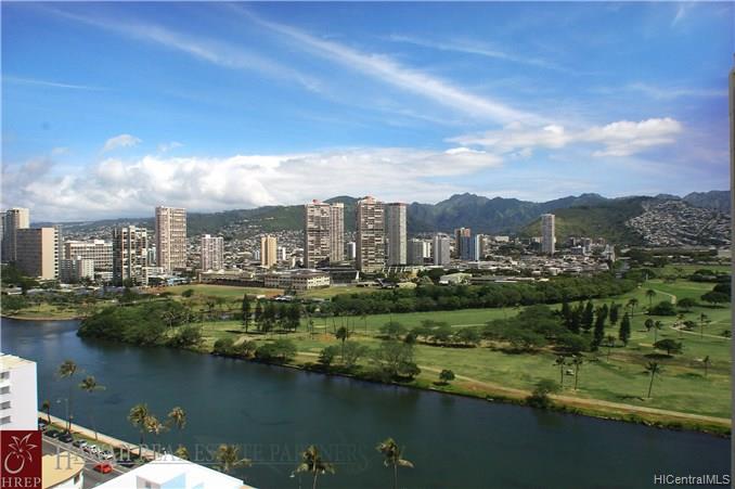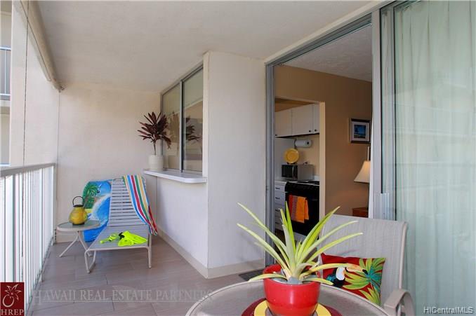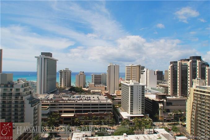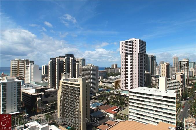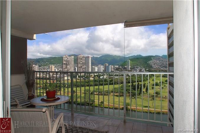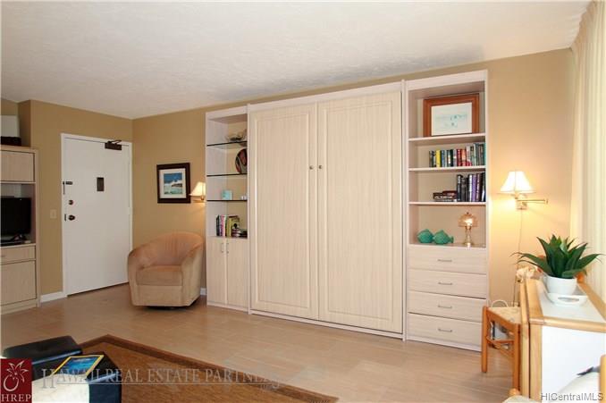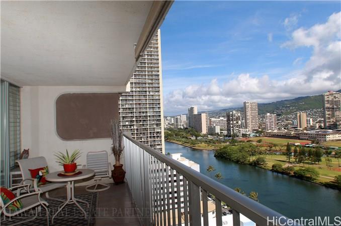 Wonderfully appointed for Hawaiian indoor-outdoor life style high floor large studio with full kitchen, washer/dryer & secured covered pkg in heart of Waikiki. Large lanai w. pass through window from kitchen allows to enjoy panoramic Ala Wai, golf course and mountain views while entertaining. Fully furnished with functional Murphy bed, easy care tiles. All inclusive maintenance fee includes even cable & internet. Fully loaded upgraded highly secured building offers rooftop amenities galore: pool, GYM, BBQ areas, saunas & amazing panoramic views. Just steps from the world class new International Market Place with classy restaurants/shops — and to world famous beaches. Truly the best value in Waikiki for a condo that has everything. Pet friendly. Very rarely available and a must see!