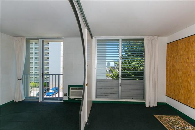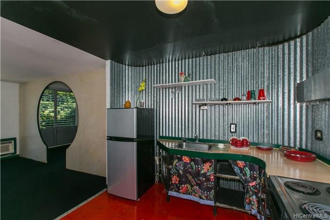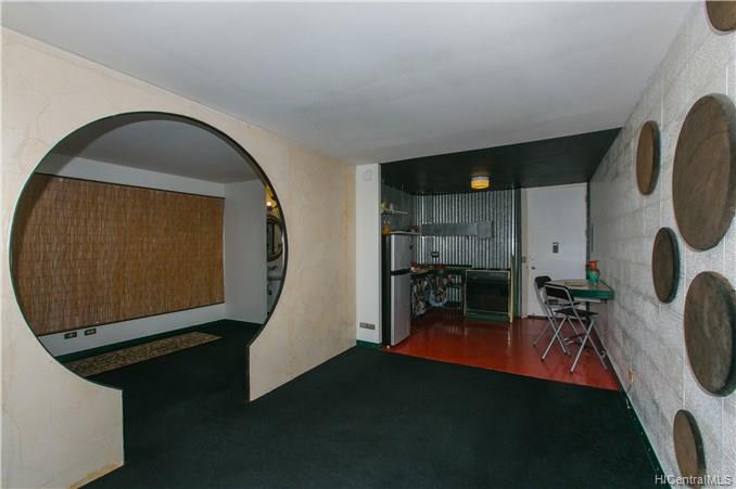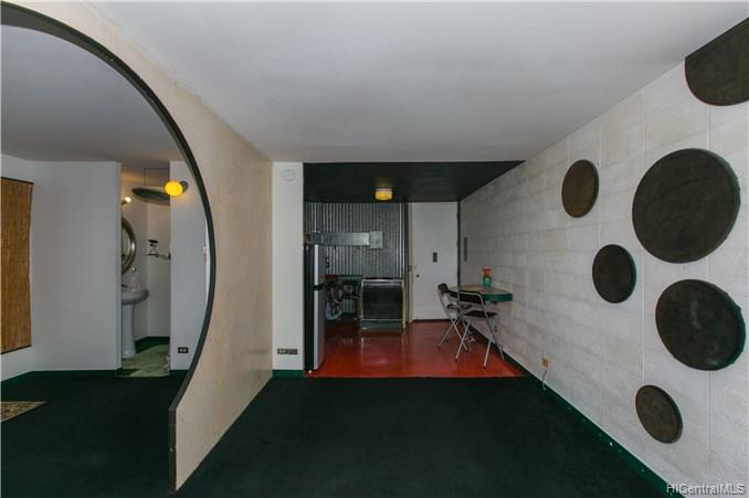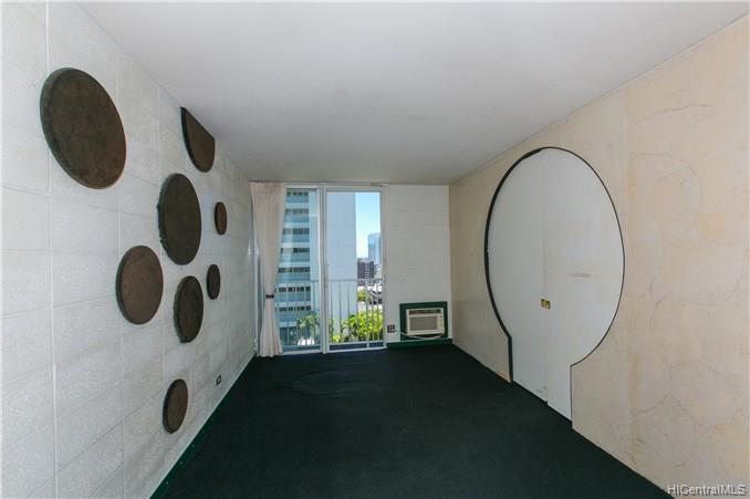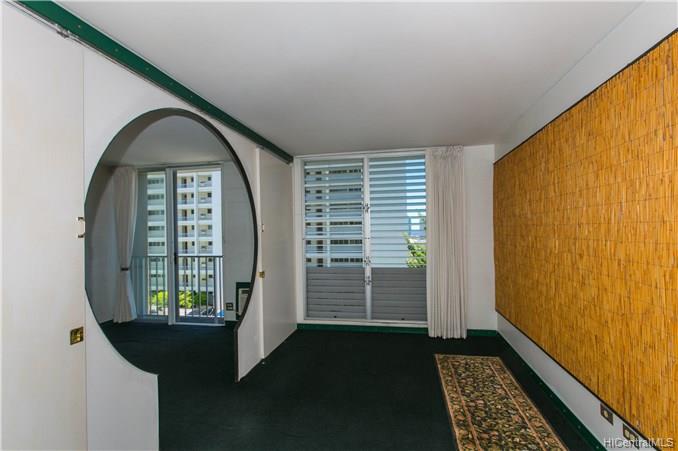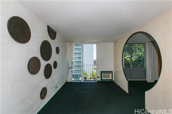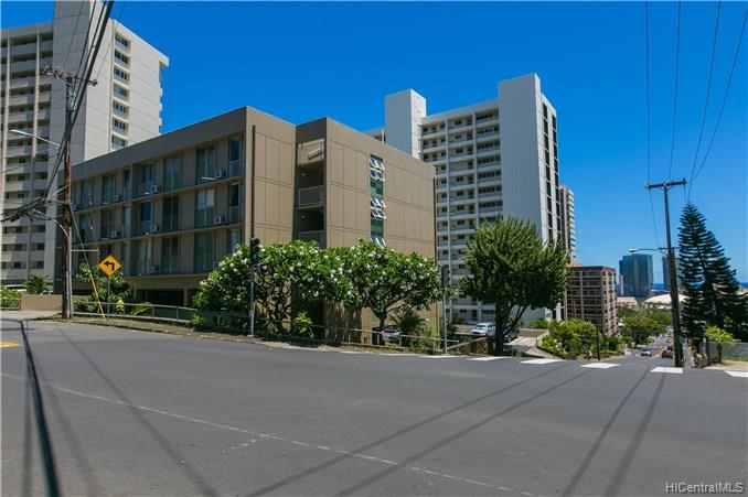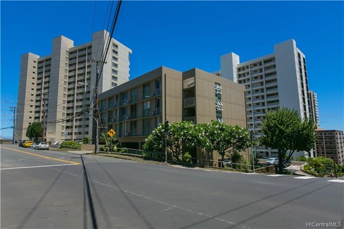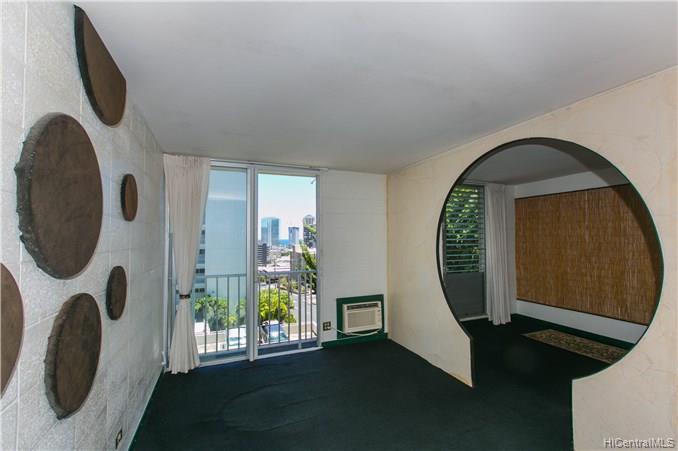 EXOTIC 1 bedroom / 1 bath corner unit located in the 901 Prospect, low-rise condominium. This uniquely designed unit features a ribbed kitchen and bathtub wall, a built-in dining table, a surfboard built in above the bathroom doorway, an oriental designed bedroom doorway with picket doors, and a partial view of the city and ocean. A perfect piece of paradise right in your own home. Enjoy the cool breeze by opening the sliding door, or relax in the a/c. A property worth seeing to enjoy all the upgraded features that it offers.