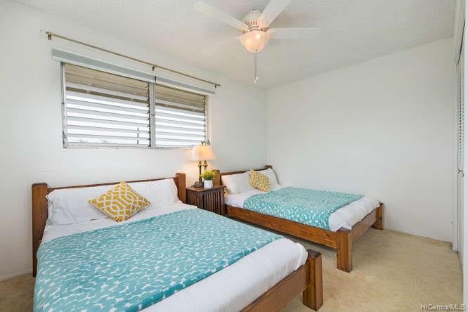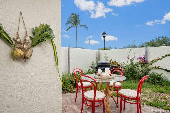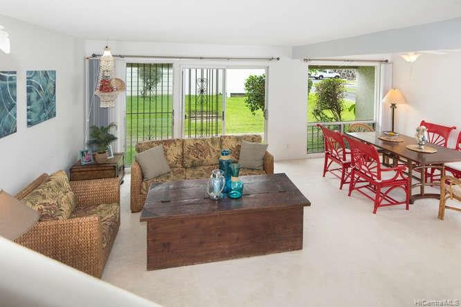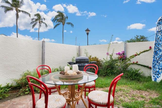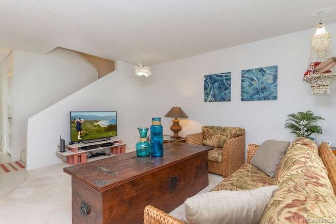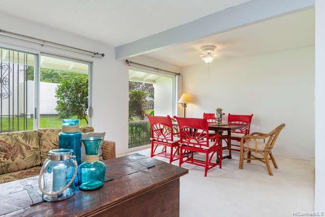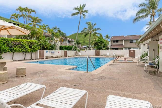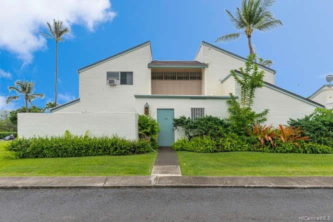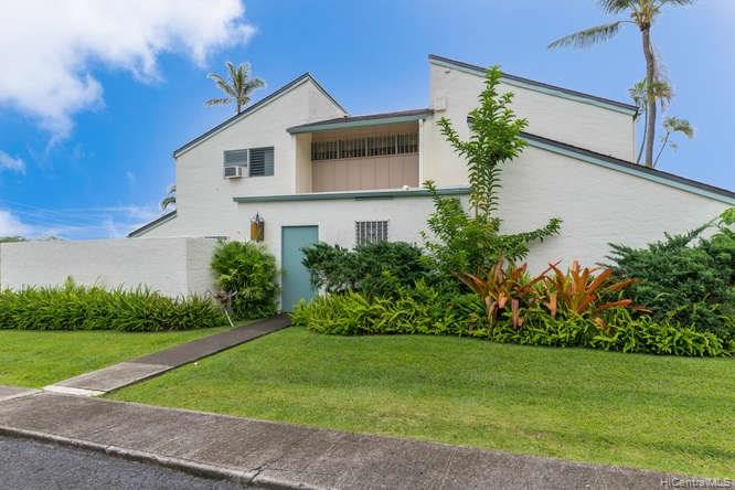 A spacious 3 bedroom/2 bath/2 parking preferred corner unit with private courtyard at the Aikahi Gardens. Situated between Kailua and Kaneohe, Aikahi Gardens has easy access to the H-3. VA approved and only minutes to MCBH. 1 bedroom/1 bath, living room, kitchen on 1st floor. 2 bedrooms and 1 bath on 2nd level makes it ideal for extended families or guests. Great amenities to enjoy including club house, pool, and jacuzzi.