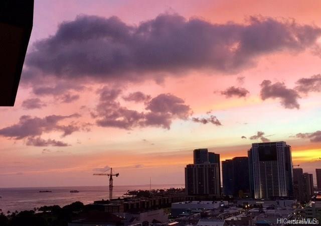 Amazing location with ocean and sunset views from this Waikiki Tower unit, Ewa side of the building. Great opportunity to buy in developing Kakaako neighborhood listed well below tax assessed value. This is the rarely available preferred King Bed room configuration, with additional pull out sofa bed. Cross the pedestrian bridge to Ala Moana Mall, across the street from Ala Moana Beach Park and only minutes to Waikiki and Kakaako. Numerous restaurants, entertainment and shopping within walking distance. See most recent income statement and compare to other units.