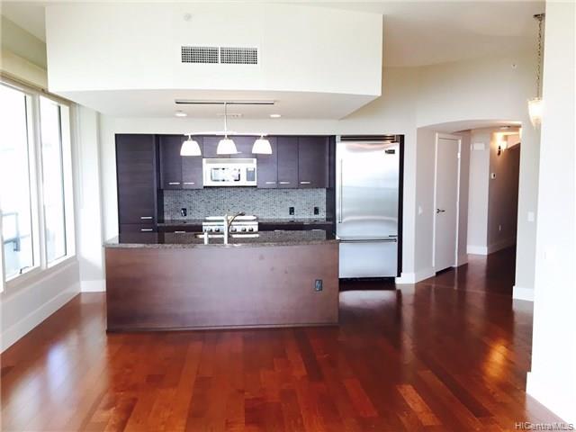 Preferred 01 corner unit Penthouse unit with large wrap around lanai. Beautiful Diamond Head .Ocean Waikiki View.Hard wood flooring in entry foyer, kitchen living room and hallways. Gracious lanai for outdoor entertaining. All stainless Viking appliances, 2parking stalls 1059/1060 side by side on the 1st floor parking . Please use AS IS addendum but unit is in very good condition.