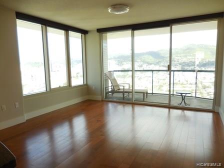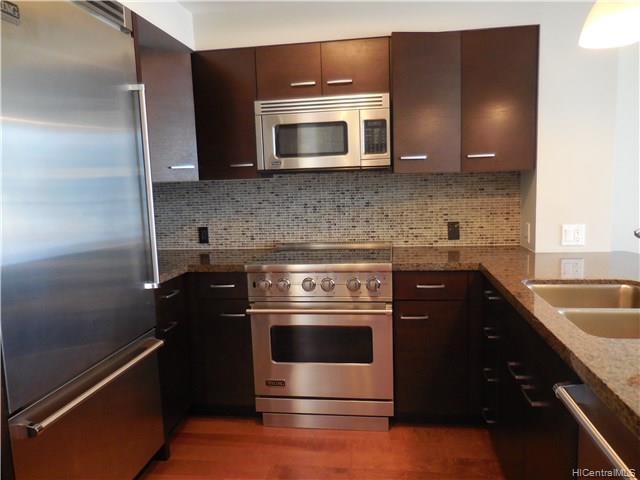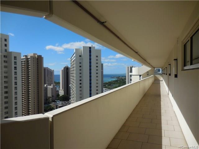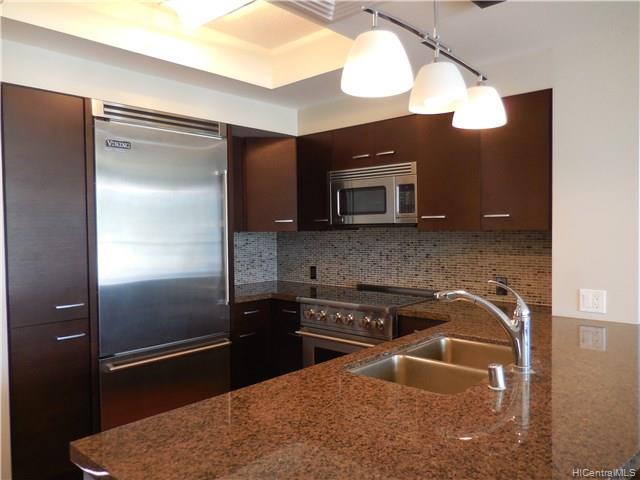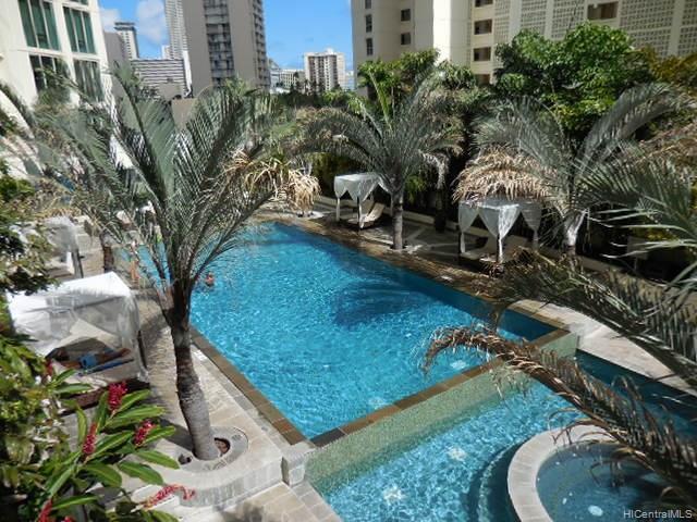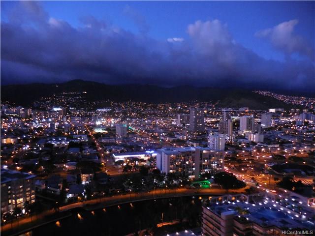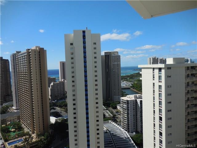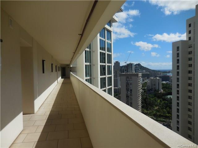 Gorgeous City, mountain, & Ocean view from this 2bed-2bath corner unit with Lanai. This unit has additional window in the living room. Newer Luxury Condo in Waikiki. Granite counter tops with Viking appliances & beautiful engineering wood flooring in entry & living area with walk-in closet in master bedroom. Resort like amenities, infinity heated pool, fitness center, party room, Jacuzzi, modern lobby & more.