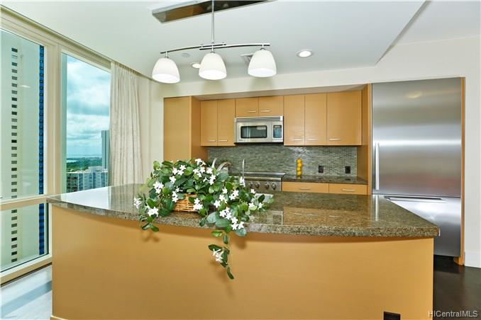 Corner unit with ocean, city, diamond head facing views, spacious 2 bedroom and 2 bathroom with balcony. Miele refrigerator, Vikings appliances. Amenities includes, gym, swimming pool, recreation room, and jacuzzi. Conveniently located next to Waikiki beach, restaurants, and entertainment.