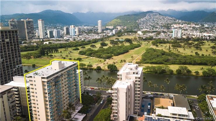Convenient city dwelling! Walk or bike around the neighborhood for everything you need. This corner/end unit with lanai is located along Ala Wai canal and is right by the beach and International Market Place, the open-air shopping center right in the heart of Waikiki. Well-maintained, fully furnished and ready for move-in. Live in the unit, rent it out to a long-term tenant, or join the Hotel Pool for consistent cash flow.