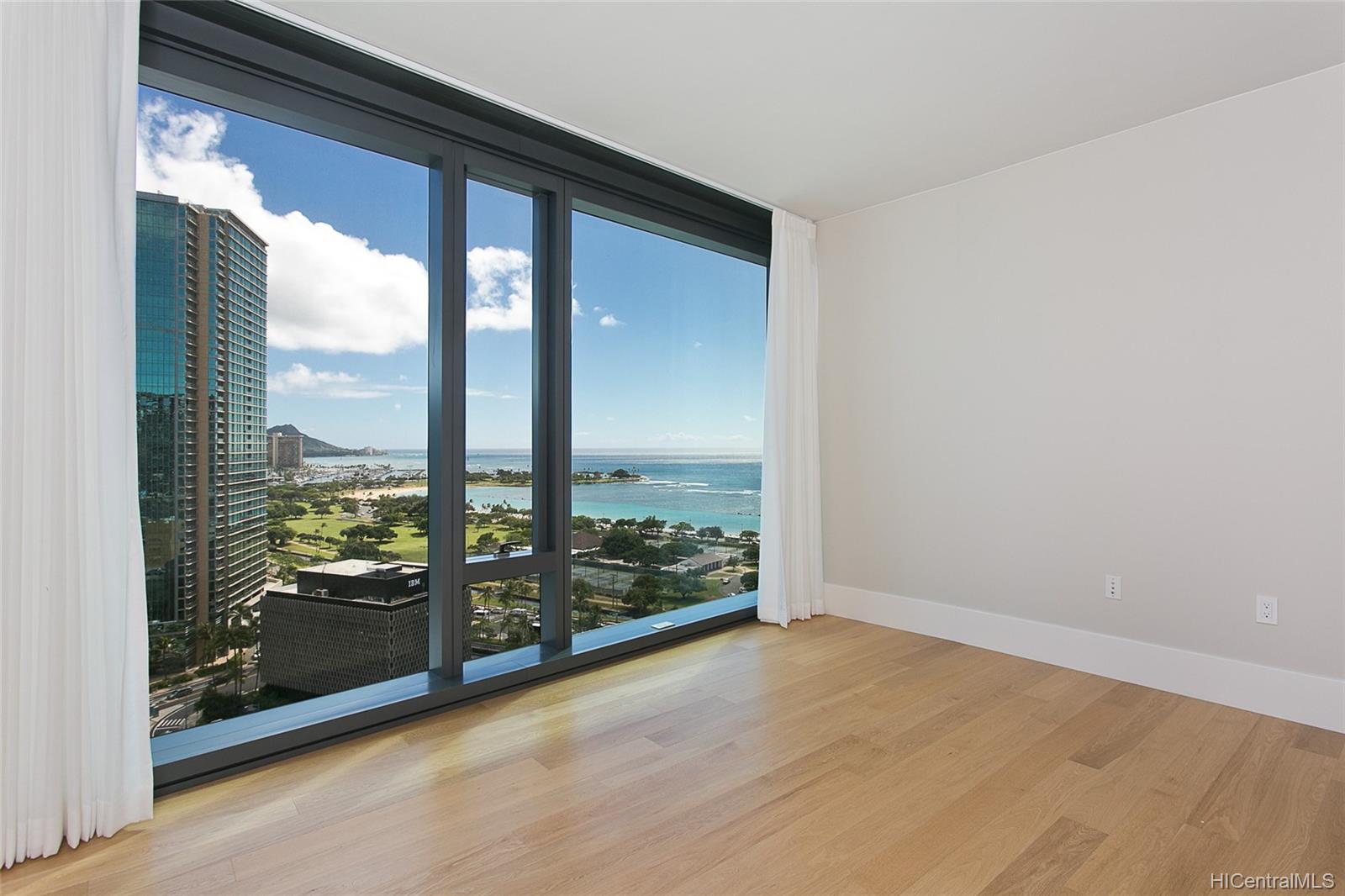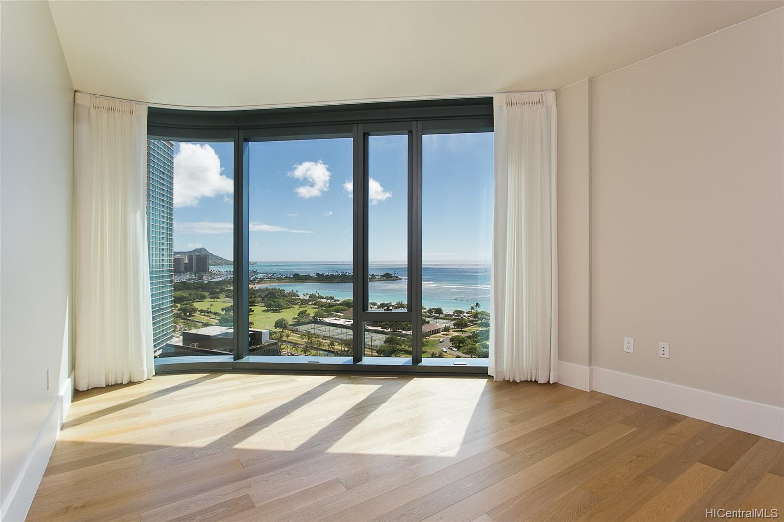 NEW PRICE!! THE LARGEST 2 BEDROOM, 2 BATH + DEN residence at Hawaii’s luxury premier condominium – Anaha. This preferred 1, 708 sf interior, Stack A “C” unit with 9-foot ceiling offers priceless views of Diamond Head and Ala Moana Beach Park. Miele kitchen appliances. Spacious master bathroom with freestanding tub. Custom walk-in closet. Unit features many upgrades including European teak cabinets with blizzard white quartz counter top. Beautiful oak floor throughout. Motorized window shades, temperature controlled wine cellar, electrical outlets for washlets and much more. BONUS OVERSIZED SIDE BY SIDE PARKING RIGHT BY ELEVATOR ENTRANCE.