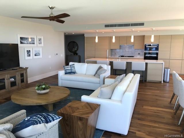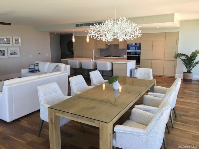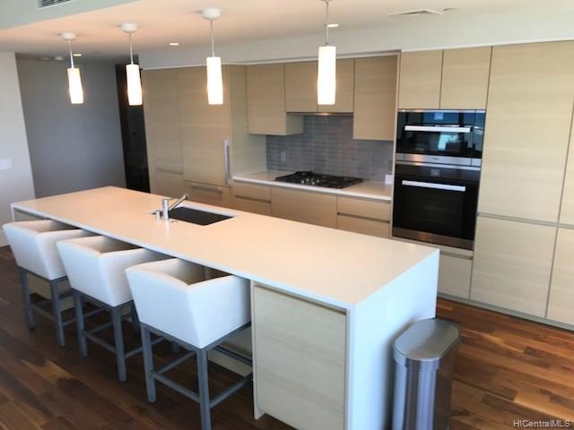 Own this premier residence at the newest luxury condominium in Ward Village. Ahana is located within walking distance of Ala Moana Beach Park, Ala Moana Shopping Center, Whole Foods market, etc. Anaha features a one-acre amenity deck with state of the art facilities, concierge services, and security. Enjoy this very spacious 3 bedroom 3.5 bathroom situated on the preferred Diamond Head/ocean corner of the building. Beautifully furnished with 9 feet ceiling and breathtaking ocean views from every window. The unit features Miele kitchen appliances, European cabinets, a walk-in closet, and comes with 2 parking stalls.