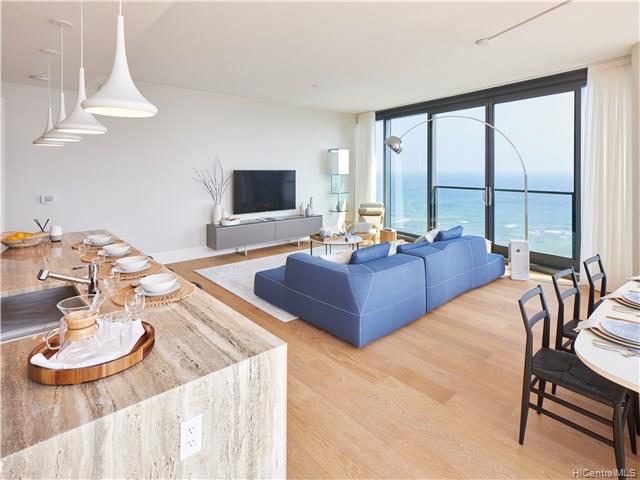 Penthouse 34B at Anaha is approximately 1, 883 sqft. The floor to ceiling windows in all bedrooms, kitchen and living room allow panoramic views. This 3 bedroom, 3 bathroom home includes a separate laundry room, and features top of the line interior finishes, with hardwood floors throughout, Studio Becker cabinets and all Miele appliances in the Chef’s kitchen. The master bedroom has custom dual walk-in closets, and a spacious bathroom with dual vanities. Graphical renderings of the planned project are subject to change. Home is sold with furniture and accessories included.