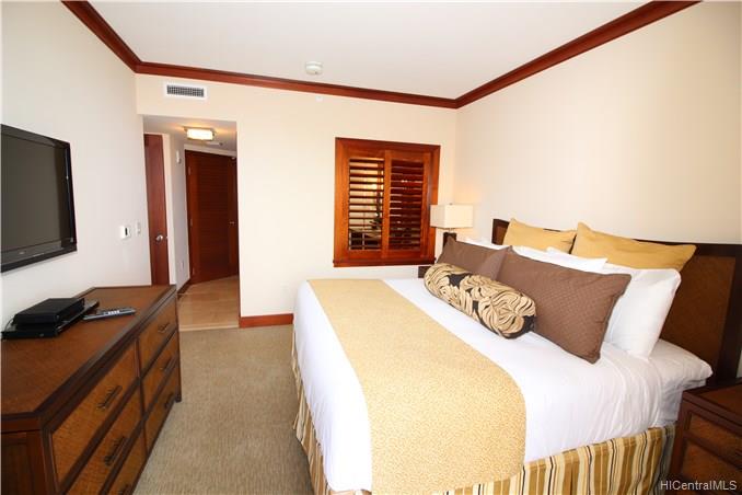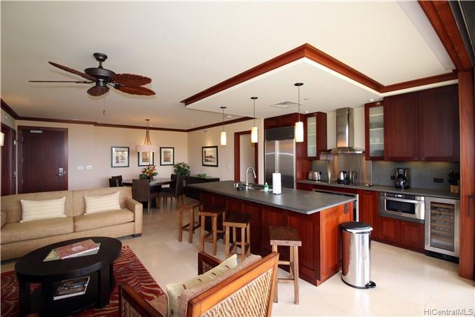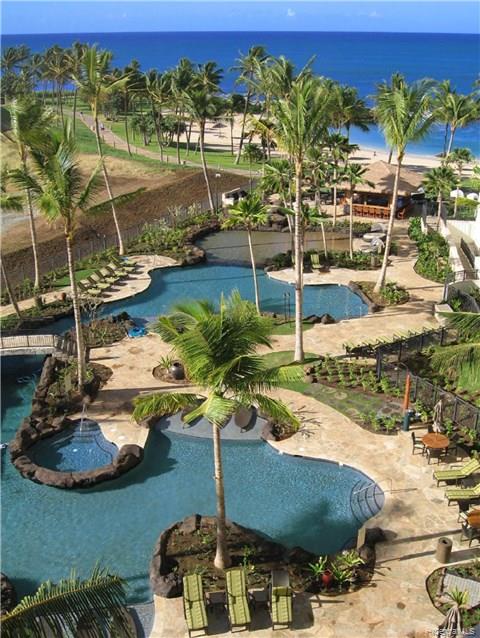 Experience the Spirit of Aloha. This Property is a private end unit on the 8th floor of the preferred sunset side and on the front Beach tower building with spectacular views of the lagoons and ocean. The unit is fully furnished & exceptionally clean. Amenities include heated lap pool & a family pool, fitness center, sauna, beach bar, etc. Walk or jog on the 1.5 miles of walking path, swimming & snorkeling in the lagoon, golf at the LPGA Championship Ko Olina Glolf Course or wine & dine at the resort venue. Must see to appreciate.