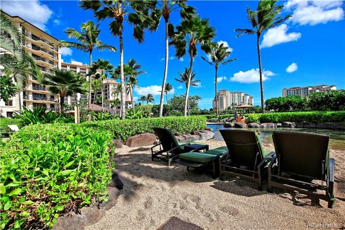 The unit is ready to be taken over by new owner with a great amount of 2018 bookings, as well as a team of greeter, housekeeper and the best maintenance contractors. Great system to run a top quality vacation rental here in Ko Olina because there is no mandatory fee for hotel pool management. you can o your own way. 2014-2017 all rental income record numbers are available for you to know how popular this resort is. All furnished and easy to rent right away, no hick ups at all to start your business or your hawaiian living. 2017 appraisal value is $1,350,000.00