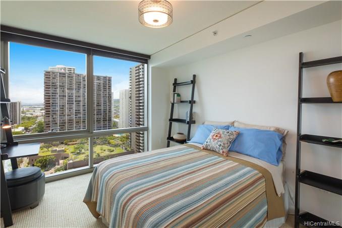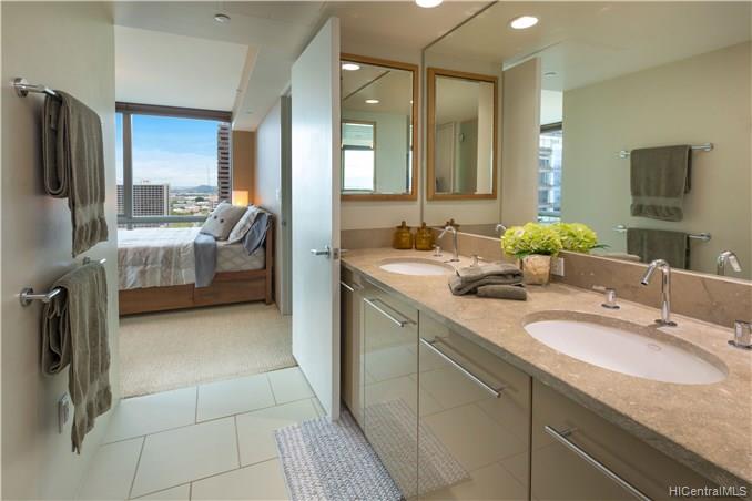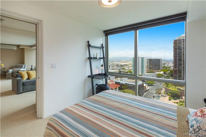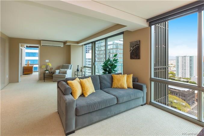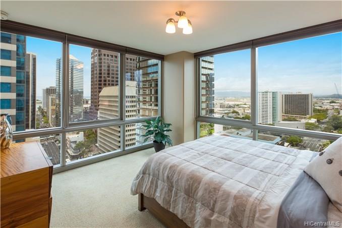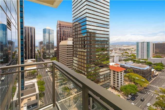 19 floors above downtown Honolulu, your amenity-rich oasis awaits! This 2 bed, 2 bath makai-ewa facing corner unit is in the well maintained & managed CAPITOL PLACE and affords city, ocean & sweeping mountain views. This spacious unit includes tandem 2-car parking & storage. The modern kitchen with stainless steel appliances, expanded living room, & upgraded master walk-in closet help differentiate this unit from others. Amenities include: multiple BBQs & Cabanas, Fitness Center, Keiki Play Area, Swimming Pool, Whirlpool, Dog Walk, Meeting, Music & Theater rooms, guest & public parking areas. Friendly & helpful on-site security, front desk and management staff truly add to the luxury feel & experience.
