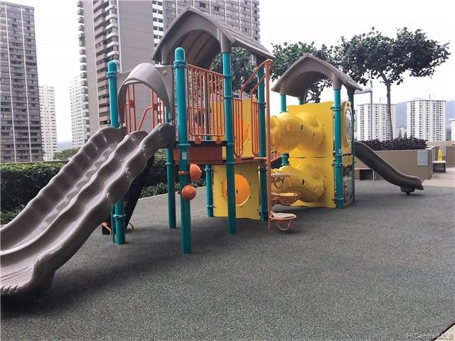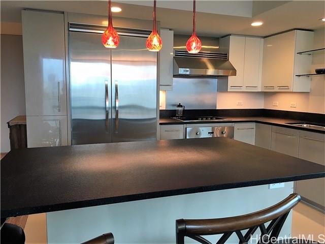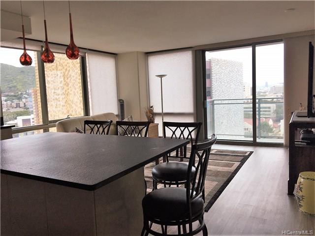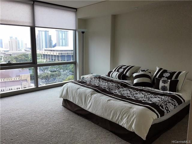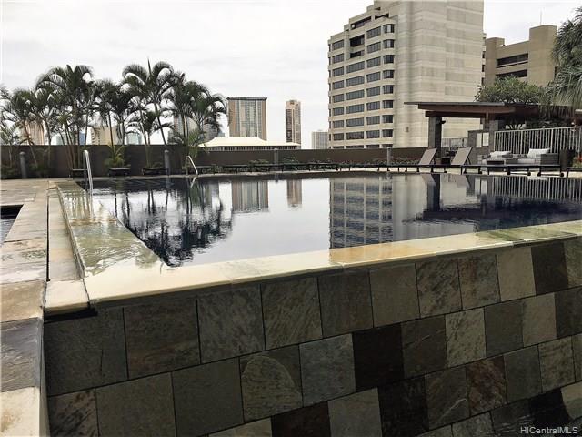 Corner/end unit 3bdrm/2bath in luxury bldg w/ resort-style amenities and services in convenient downtown Honolulu! Professional and friendly staff. Walk to work, restaurants, shops, businesses and return home to relax in infinity edge pool, fitness center, theatre, cabanas, and much more! Pet-friendly with dog park! Extra storage near covered parking stall. All bedrooms and living room enjoy lovely views from floor to ceiling windows!