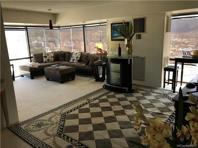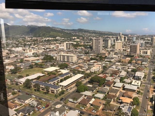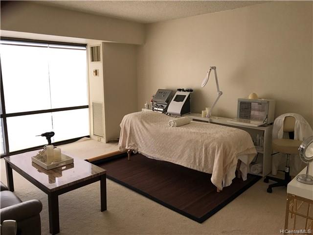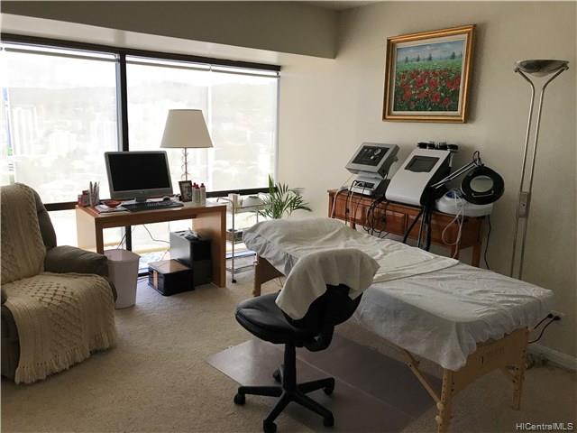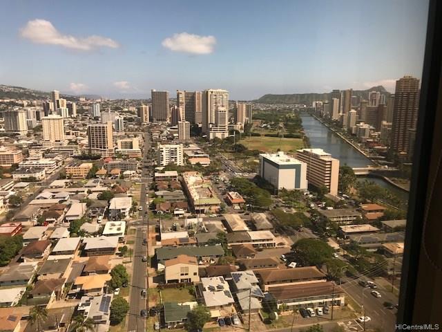 Panoramic. unobstructed Views from Diamond Head to Ocean. Floor to Ceiling Windows. Cool/Quiet Corner of Building. Dual Zoned Residential and/or Commercial. Large Living Room and Bedroom/Offices. 24Hr Front Desk & Security Guards. Pool,Whirlpool, Men’s & Woman’s Gyms, Lockers, Showers & Saunas. Conference & Party Rooms. Large Rec Deck with Tennis, Basketball & Track. Doggy Park. Only Four units on this Floor. Current Tenant is on Mo/MO but will sign a long lease.