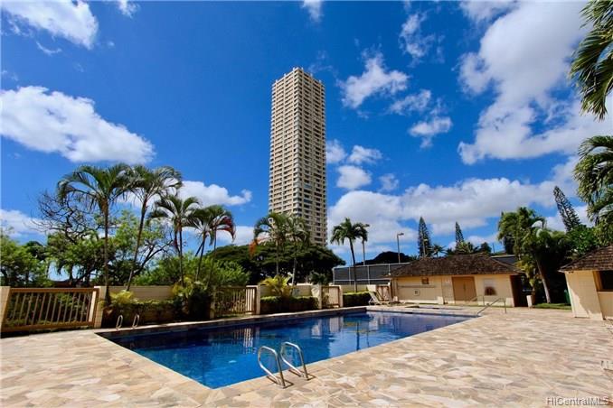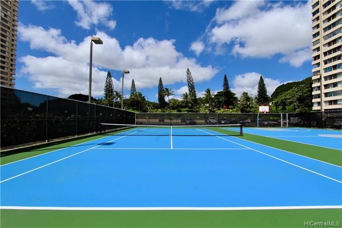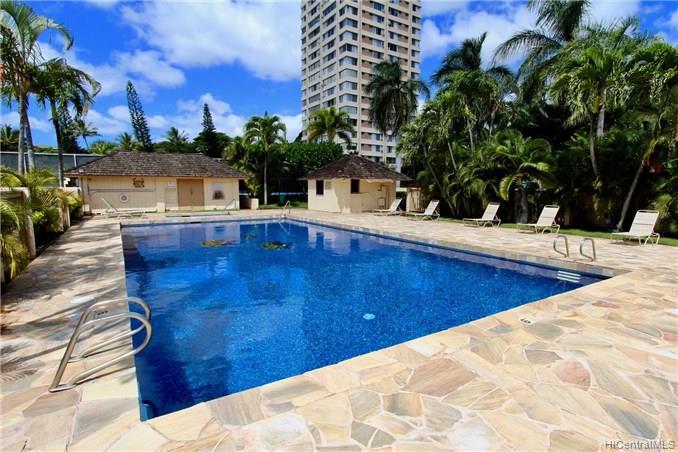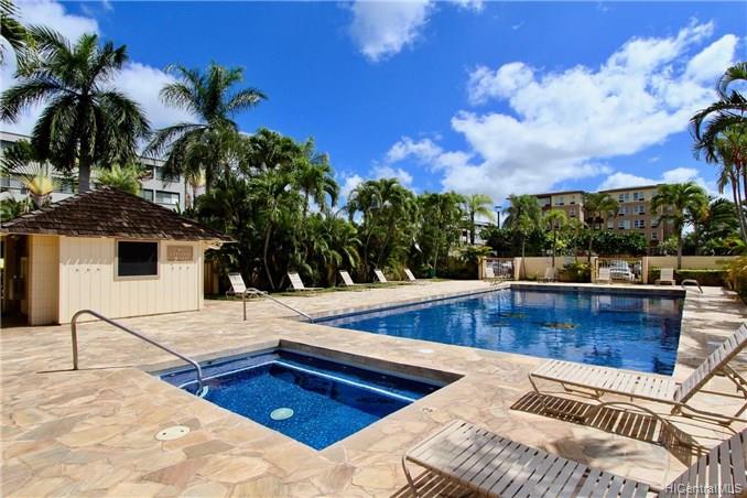 Cool side of the building unit. This home has Security, large pool, Jacuzzi, BBQ area, Tennis and Basketball court. Walking distance Bus line, shopping, restaurants , theaters and Leeward Community Collage.