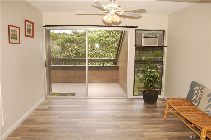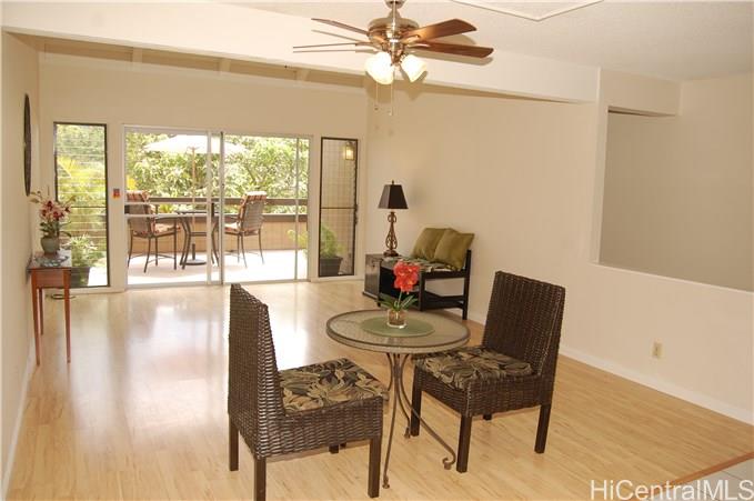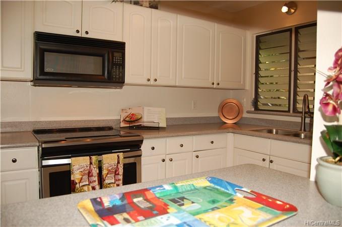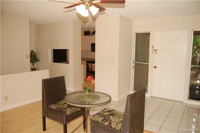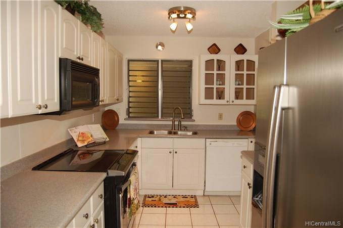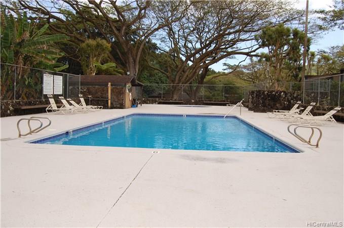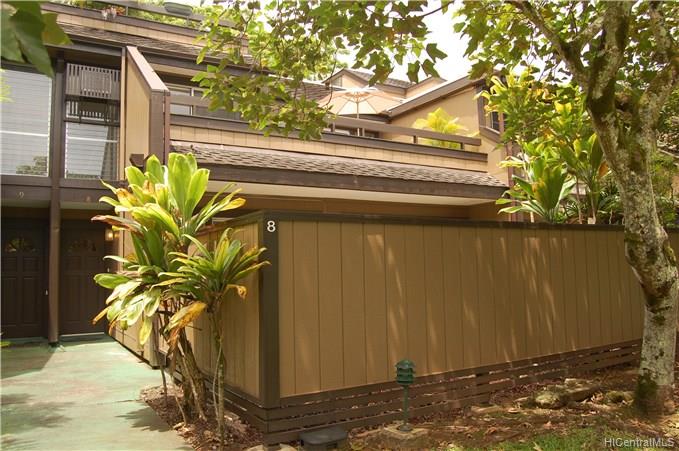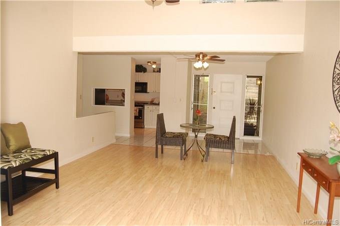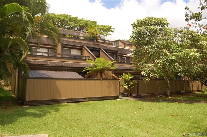 25k Price Improvement! This townhouse features spacious kitchen with stainless steel appliances, a new range and pot rack; master suite on the main level, and 2 large lanais: one being an enclosed courtyard that’s great for pets and/or gardening. Bonus room on the lower level could be a den, study nook or yoga/fitness area. Freshly painted with luxury vinyl plank flooring in the master bedroom and lower entry, new carpet in bedrooms, laminate flooring & tile in living room and kitchen. Additional storage behind the laundry room and at the upper entrance. The complex offers a clubhouse for parties and a pool and is close to Koolau Shopping Center which has shopping, dining, and a movie theater. AHS Home Warranty Included on appliances. Turnkey and ready for YOU!