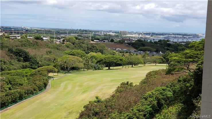Charming two bedroom two bath one parking (close to unit). Great place to retire or to rent out. Fantastic opportunity to own a Hilltop 6th floor view of golf course. Serenely quiet & breezy year-round. Close to Camp Smith, Pearl Harbor & Hickam. Indoor driving range, basketball court, pool, tennis court, hot-tub, 2 workout facilities w/saunas, rec. room & security. Conveniently located near mall & restaurants. Pet friendly. www.colonnadeonthegreens.org Seller requests to use Brian Chan at Title Guaranty, King St.