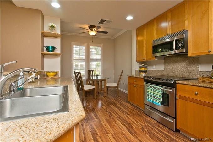 リゾートの設備と駐車場の美しく維持されたユニットは!この広々 とした 3 ベッドルーム ユニットは、積層のフロアー リング、クラウンモールディング、新しい台所アプライアンス、中央の AC 専用ラナイ島 & 1 階アクセス ゲートの入り口でビニール シャッターを誇っています。プライバシー保護のためベッドルームを分離して、マスター大規模な二重虚栄心に寛大なウォークインクローゼット付きバスルームします。ハワイ カイ半島は賞を受賞した、マリーナ間口、フィットネス ルーム、レクリエーション ルーム、2 塩水プール、渦潮、児童プールと遊び場、ゲーテッド コミュニティのパス、バーベキュー パビリオン、セキュリティと現場スタッフのウォーキング/ジョギング!ゲスト & コミュニティの路上パーキングがたくさん。近くに学校、ショップ、企業、バスします。ウォーキング コース、犬の公園でペット友好的なコミュニティ。