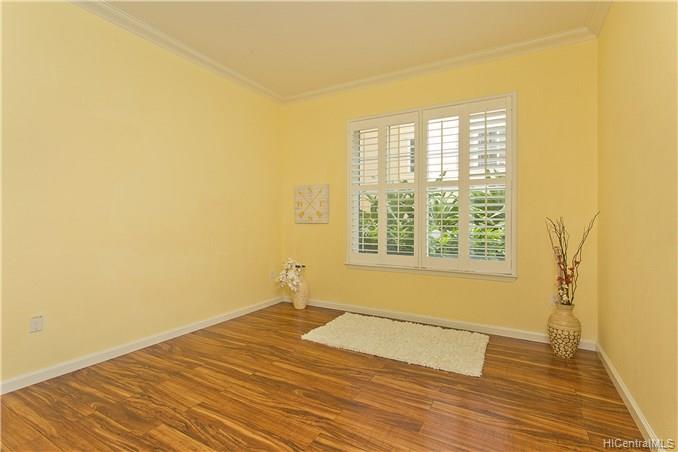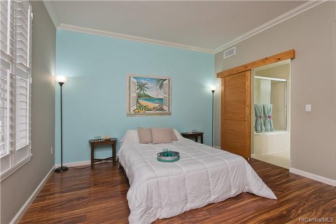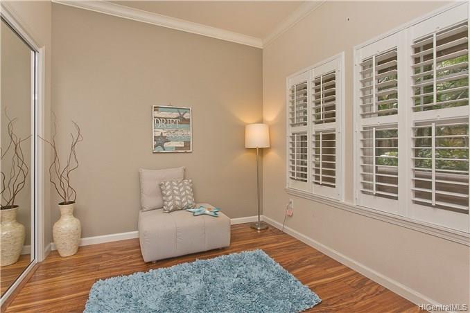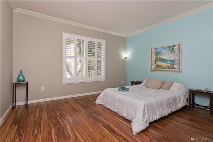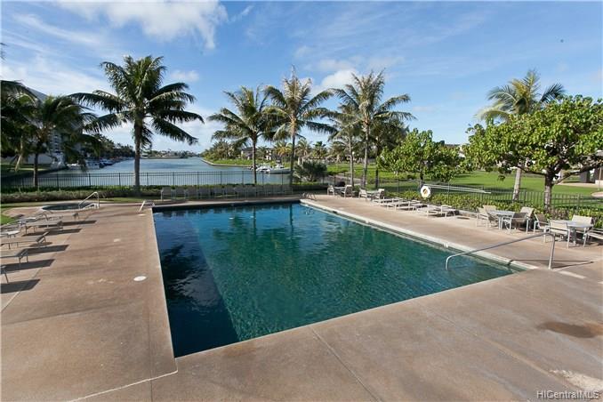 Beautifully maintained unit with resort amenities and lots of parking! This spacious 3-bedroom unit boasts vinyl shutters, laminate flooring, crown molding, newer kitchen appliance, central AC, private lanai & ground floor access with gated entrance. Bedrooms are separated for privacy, master features a large double vanity bathroom with generous walk in closet. Hawaii Kai Peninsula is an award winning, gated community with marina frontage, fitness room, recreation room, 2 saltwater pools, whirlpools, kiddie pool & playground, walking/jogging path, BBQ pavilions, security & on-site staff! Lots of guest & community street parking. Close to schools, shops, businesses, bus line. Pet friendly community with walking paths and dog parks.