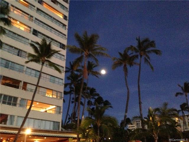 The Colony Surf is the only fee simple, direct beachfront property on Kalakaua Ave. The house rules allow for a minimum of 30 day rentals, which is one of the most lenient rental policies on all of Oahu’s “Gold Coast”. This unique property is configured as a large studio with a walk in closet (including an “owner’s closet”); aqua tinted, polished concrete floors; cove lighting; full kitchen; & washer/dryer. Sold fully furnished with kitchenware, linens, etc. Ready to move right in! The additional monthly payment can be reduced by approximately $600. by converting from co-op to condo. Ask your Realtor for more details. Professional photos forthcoming.