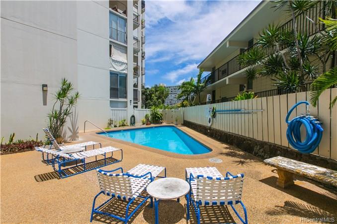 CONSULATE – PRICE REDUCTION!!! Great location in the Makiki area. Close to many schools, public and private, including the University of Hawaii at Manoa. Situated along bus routes for easy travel without a car if you choose. Enjoy the cool mountain breezes and the scenic view of Honolulu. Dine over the pool with a panoramic view. The enclosed lanai gives the dining area that spacious feel. Picture your upgrades on this clean slate! Great purchase for owner occupant or investor. Make a reasonable offer and get a quick response!