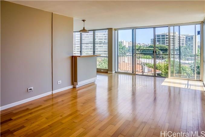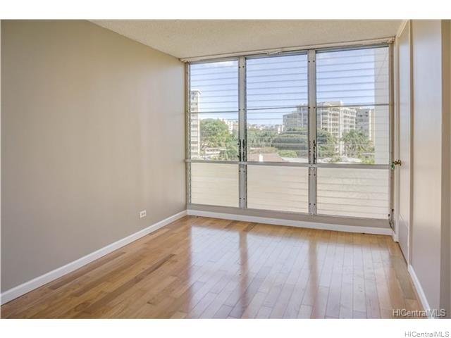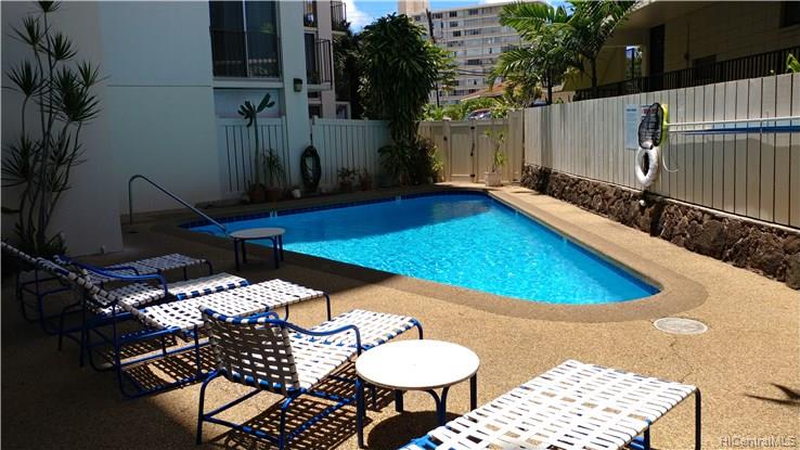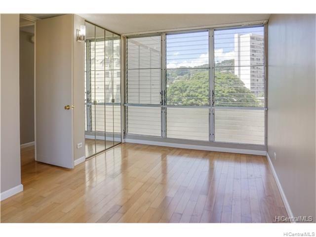 Great new price for this extra large, 2 bedroom, end unit with enclosed lanai. Spacious interior with hardwood laminated flooring. Full size Electrolux washer and dryer. Recently painted. Easy access to freeway, Punahou School and U of H. Building was repiped and has swimming pool and bike rack. Assessment paid by Owner.
