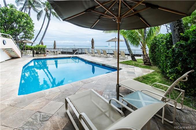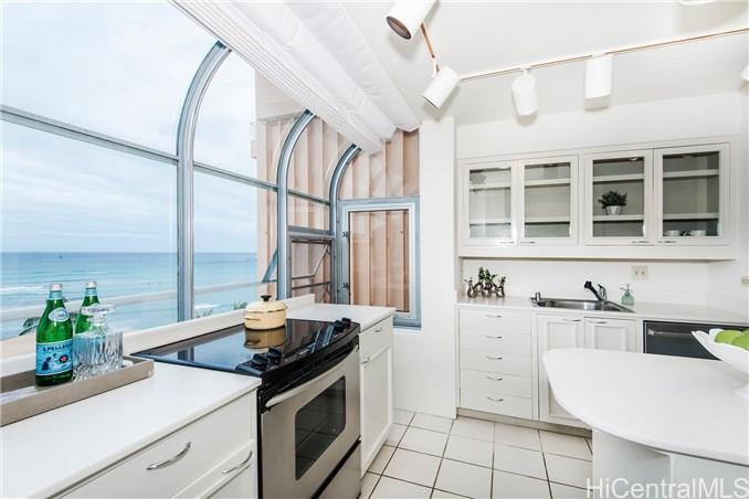 Live the Gold Coast, oceanfront life! This one of a kind, designer unit is in one of the best buildings on the Gold Coast-Coral strand. Enjoy panoramic views of the stunning turquoise ocean and lush, green Diamond Head. Both the kitchen and living area feature atrium windows; you will always be surrounded by paradise. One of only 3 buildings on the Gold Coast with a swimming pool. Just steps from beach and minutes into Waikiki and Kahala with endless entertainment, dining, and shopping options. Includes one partially covered parking spot. This unique unit has the views Hawaii-living dreams are made of; it won’t last long!