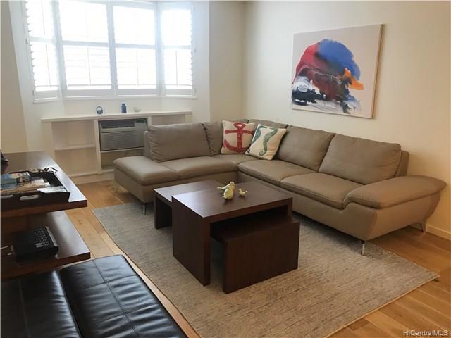 Convenient Loft Style Living at the Gateway of Waikiki, in a quiet location. Beautifully designed end unit with granite counter tops and like new appliances. Elegant wood shutters on windows, natural lighting, window air conditions in each room. Washer and dryer in the unit. Turnkey unit is ready to move in and in excellent condition. Secured entry and fob access elevator with gated covered street level parking. Ten minute walking distance to Ala Moana Beach, Waikiki Beach, and Ala Moana Shopping Center. Ten minute drive to Downtown Honolulu.