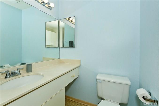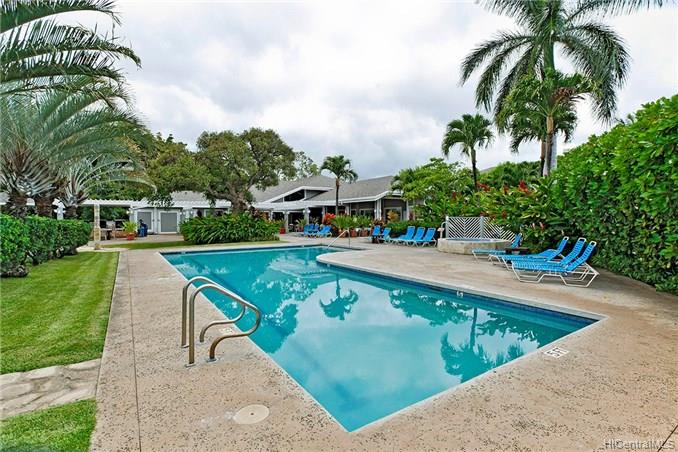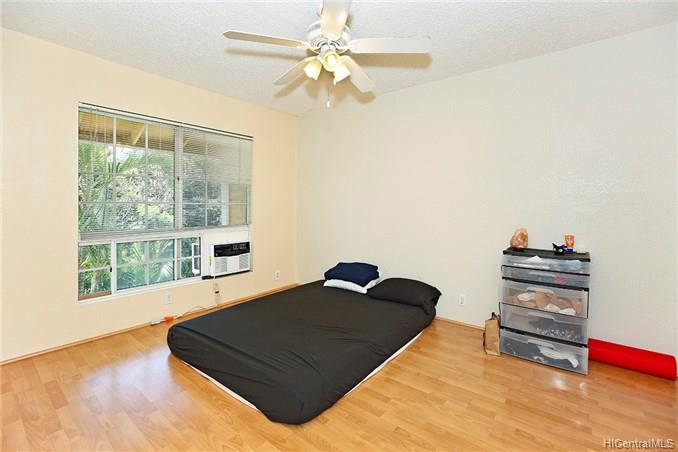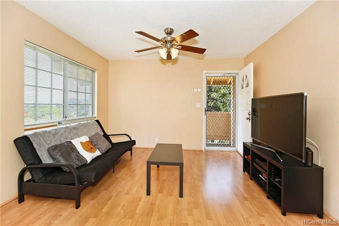 Desirable second floor end unit at centrally located Crosspointe! Neutral calming colors throughout this breezy 2 bedroom unit. Nice wood laminate flooring throughout, washer and dryer included as is 1 parking stall. Enjoy living at Crosspointe gated community! Many amenities to enjoy including pool, recreation area and BBQ, security on site and Resident Manager. Great location close to Aloha Stadium, Pearl Harbor/Hickam, with shopping and restaurants nearby.