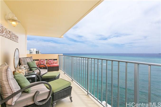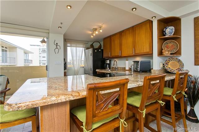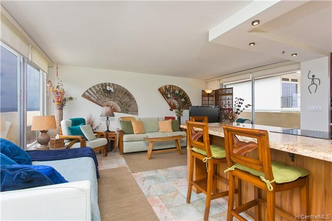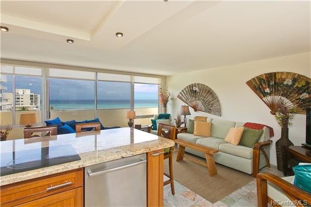 With updated custom cabinetry, granite counter tops, fully-equipped kitchen with dishwasher, microwave, range & toaster oven, and refrigerator, you will be ready to prepare a gourmet meal. Located along Waikiki’s famous sandy beaches, and just steps away from fine dining, shopping, and all the excitement and entertainment of Waikiki, this is truly one of the best spots on the island. This suite has stunning panoramic views of Oahu’s South Shore. You can look out at the turquoise waters and watch the surfers from your private lanai or even from the kitchen and living room. It is the perfect place to watch the sun set over Waikiki and the sparkling Pacific Ocean. Legally permitted for short term Airbnb & VRBO rentals; Tremendous rental history