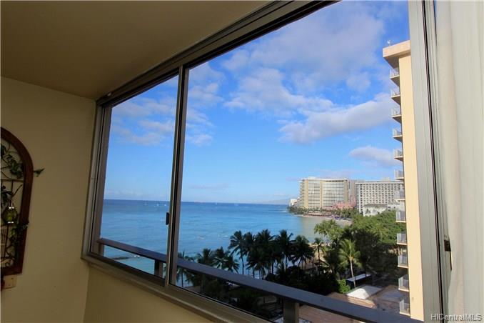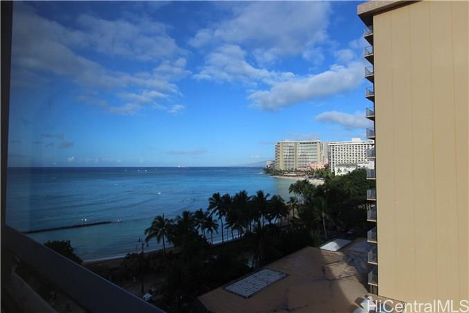 Excellent location in middle of Waikiki. One step away from Waikiki Beach, many restaurants, and shops. Well maintained building. Great view from this unit. Unit currently hotel pool. Great for an investor. Sold As-Is.