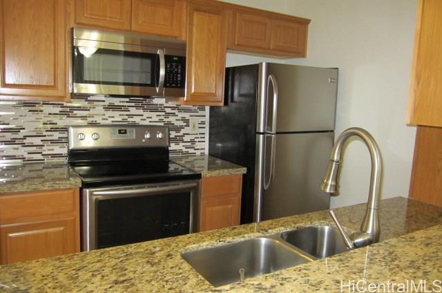 Ideal location at Launani Valley for investors & owners looking for the ideal centrally located property. Well maintained, spacious open floor plan & high ceilings & tastefully remodeled in 2014. Stainless steel appliances, laminate floors throughout, 2 parking & washer/dryer in the unit. Amenities galore…pool, whirlpool, BBQ, basketball court & more. Just minutes away from H.2 freeway on/off ramps, Schofield & Wheeler. Gardens at Launani has it all! Won’t last long.