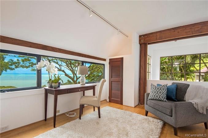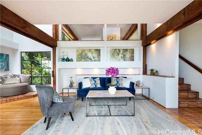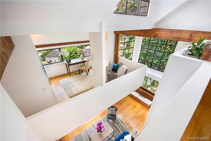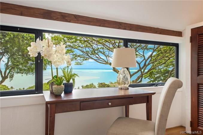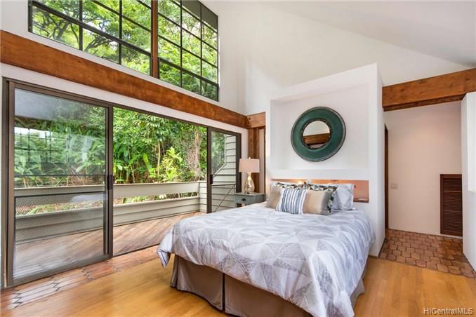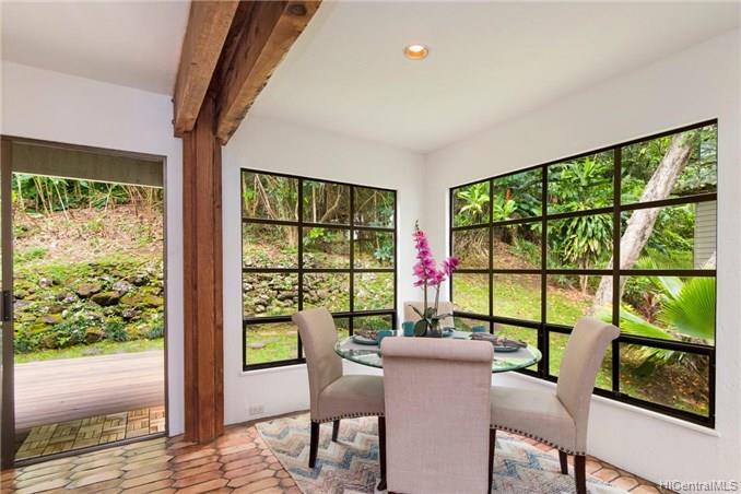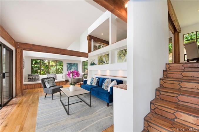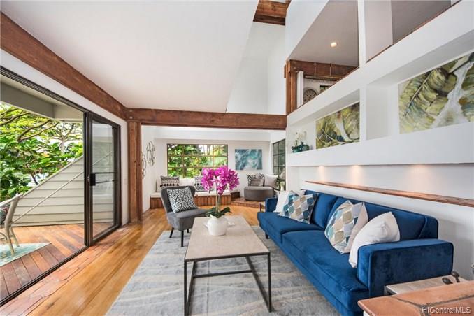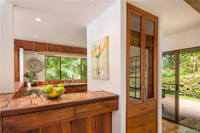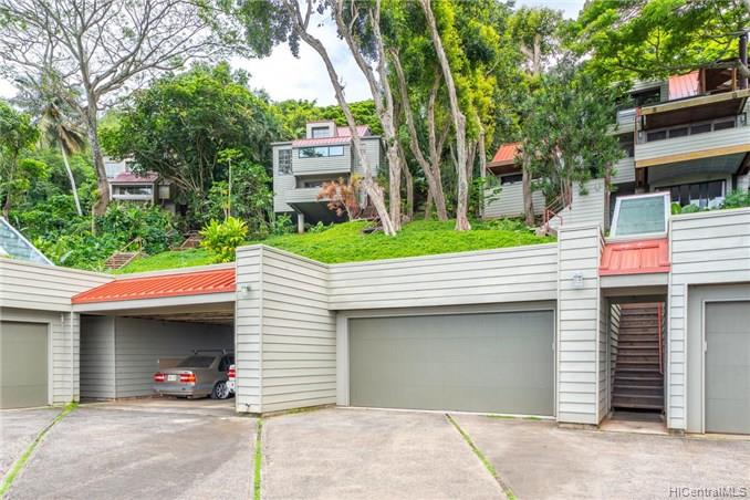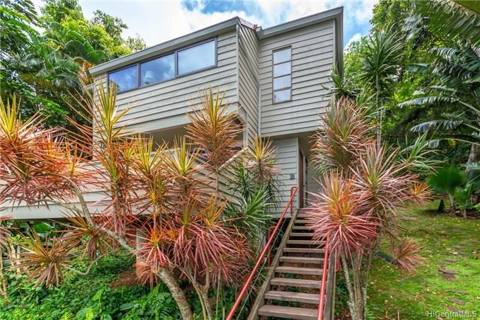 Perched on a tropical hillside and nestled against preservation land, this tranquil and inviting home is one of only 4 single family dwellings in a serene, 2+ acre condominium project. This tree top oasis boasts an open, multi-level floor plan, deliberately designed to capture inspiring views of Kaneohe Bay and Kualoa ridge. The unique architecture features built-in koa cabinetry, exposed beams, soaring ceilings, and a private 2 car garage with ample storage. With a short, easy commute to Honolulu and Waikiki, Lulani Street provides a relaxing retreat for discriminating buyers.