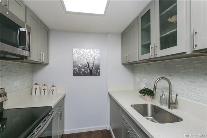 Beautifully renovated 3 bed 2 bath in Haiku Hale! This unit boasts brand new stainless steel kitchen appliances, new flooring, fresh paint, upgraded bathrooms (with tile flooring), and spacious lanai. An open floor plan allows for a fluid living space, and each bedroom has a good sized closet! Amenities of the complex include pool, rec room, and exercise room. Resident Manager on site and 1 open parking stall. Must see to fully appreciate!