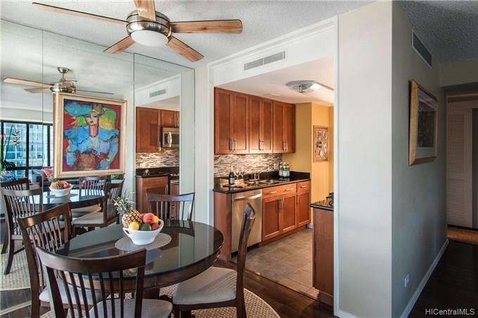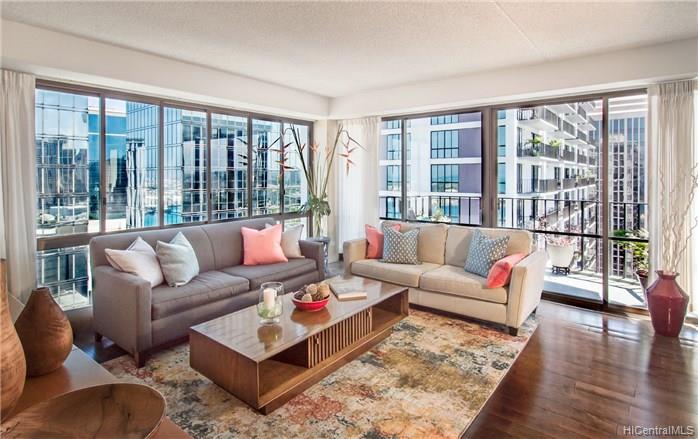 広々 としたダウンタウン ホノルルに住んでいる!利便性とホノルルの中心部と町のレストランの最新動向のハブに位置するハーバー ・ スクエアのクオリティ ライフ スタイルをお楽しみください。 ホノルルの国会議事堂地区と海にまたがる山から美しい景色を受けながらラナイで朝のコーヒーをお楽しみください。 移動で、楽しませるし、場合は、ホーム オフィスを開く準備ができて準備ができて. 堅木張りの床、花崗岩のカウンターを含むホームこの上品な改装を愛する。