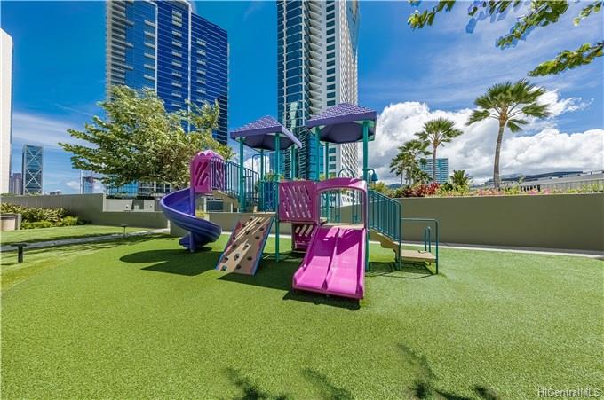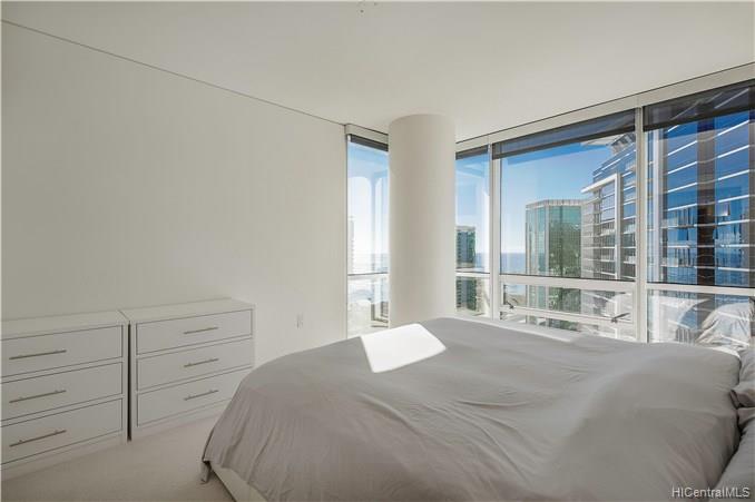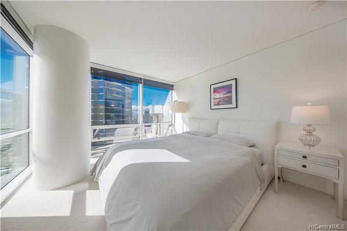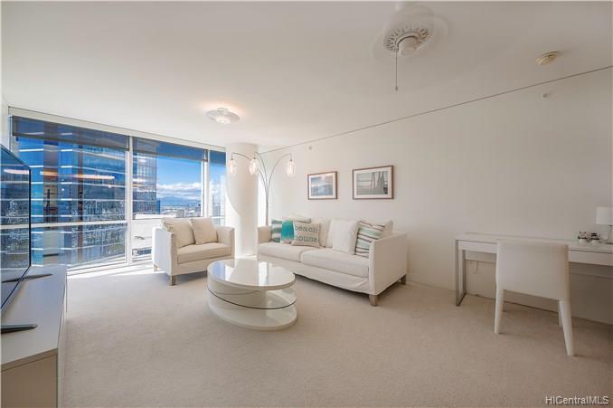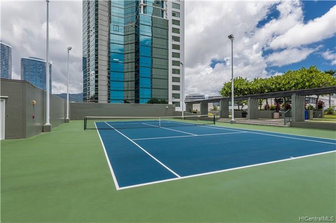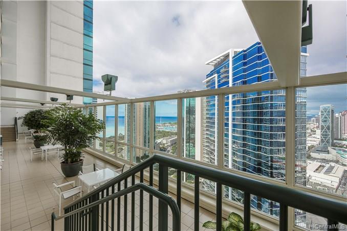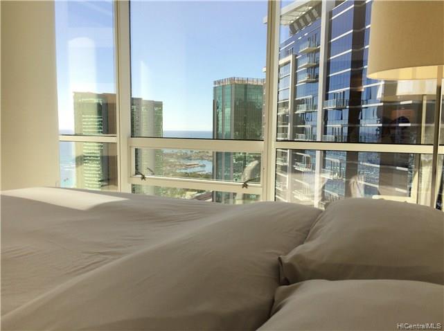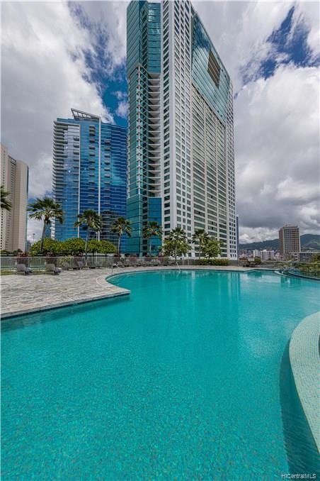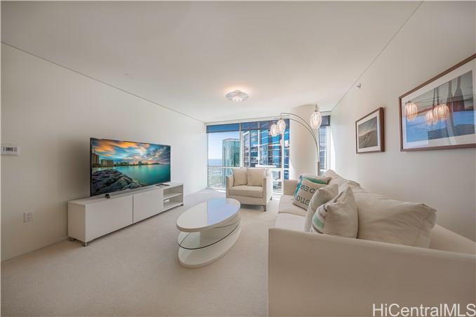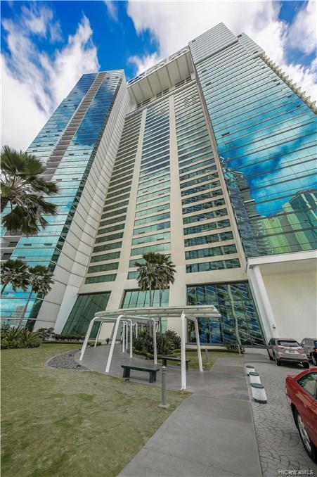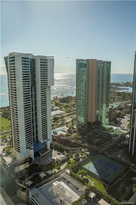 Rare, high-floor, one bedroom unit at Hawaiki Tower. A highly desired building in the rapidly developing Kaka’ako area. Located directly across Ala Moana Shopping Center. Steps to beaches, parks, shopping, restaurants, movie theaters and night life! Beautifully landscaped building exterior, and a bright, spacious, contemporary lobby with mid-century inspired furnishings. Unit includes a kitchen with granite countertops, Gaggenau appliances, spacious bathroom, and a bedroom including a walk-in closet. Great amenities include BBQ area, tennis court, pool, spa, and more!
