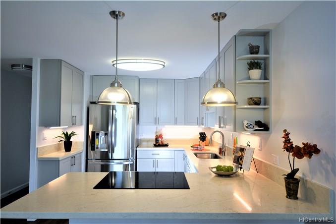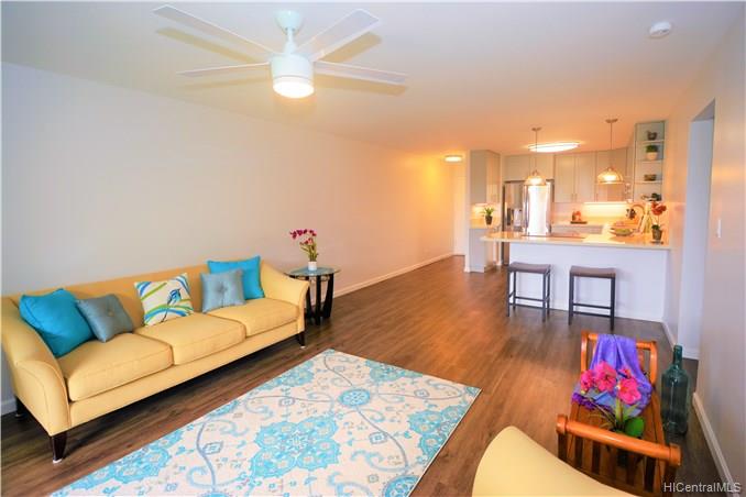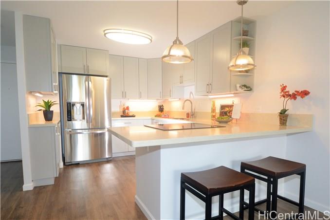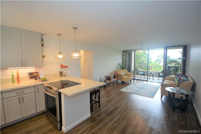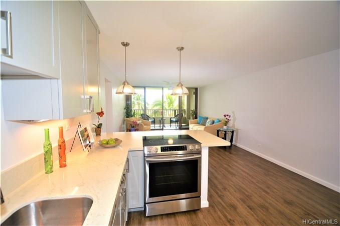 Back on Market no fault to Seller. Beautifully renovated in 2018. MOVE IN READY! Stunning upgrades with all new cherry wood cabinetry, quartz counters, vinyl wood planking, NEW stainless steel appliances, NEW washer/dryer. Drywall ceilings with NO POPCORN, all electrical hidden in ceiling with no wire molding showing! Live in this luxurious 1/1, conveniently located close to Costco, shopping, schools, parks, beaches, bus-stop, and post office. Check out the low maintenance fees – one of the lowest in Hawaii Kai. This home to be featured in HGTV’s Aloha Dream Homes!