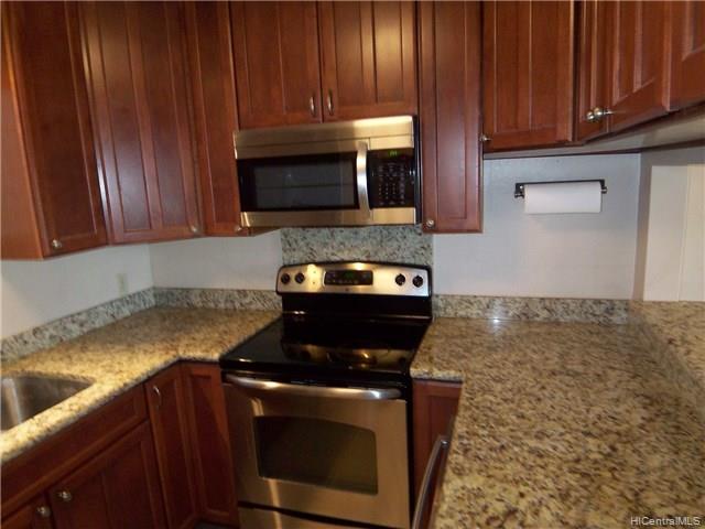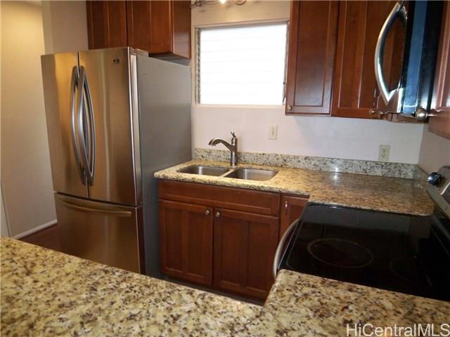 WOW! Top of line updated kitchen, baths and living room flooring. Granite counters and stainless-steel appliances. Mirrored closet doors, Spacious Rooms! Ocean View of Pearl Harbor from Master Bedroom. Patio for dining and leisure plus an additional lanai overlooking grassy, open area. Great home for entertaining. One car garage plus additional one car parking space. Lots of guest parking! Desirable location and a great opportunity for an easy commute. These homes rarely come on the market for sale. Ready to move in now! Close to many shopping and dining opportunities. Waiau Neighborhood Park close by plus the Newtown Recreation Center offers swimming, wading pool, basketball, tennis, a health club and variety of classes and activities.