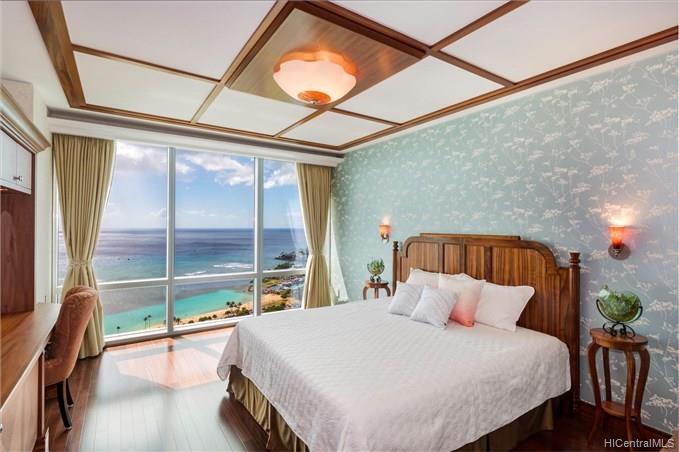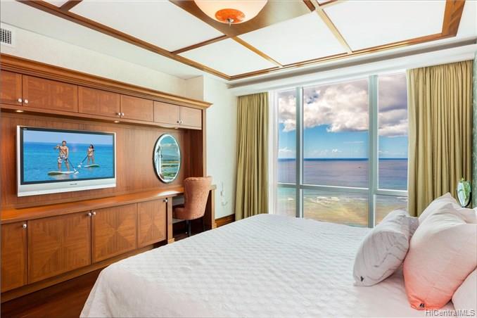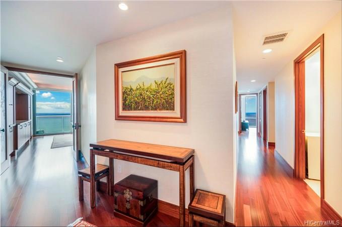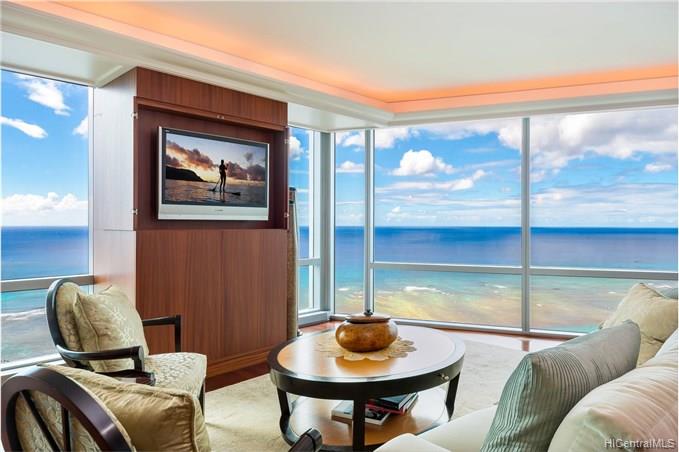 Penthouse Living in Paradise as it should be at one of Honolulu’s prime residences. Highly sought-after floor plan with 4 bedrooms/3.5 baths feels more like a single family home. 10-ft. floor-to-ceiling windows showcasing unobstructed views of the ocean and coastline. A renowned interior design firm appointed the penthouse with beautiful hardwood flooring, elegant light fixtures, molding and trim for the windows and ceiling, and custom built-in cabinetry throughout. Only 1 of 4 preferred penthouses like this in the building. 3 assigned parking stalls and an assigned storage room conveniently located in front of the stalls. The beach, shopping, and restaurants are at your footsteps!