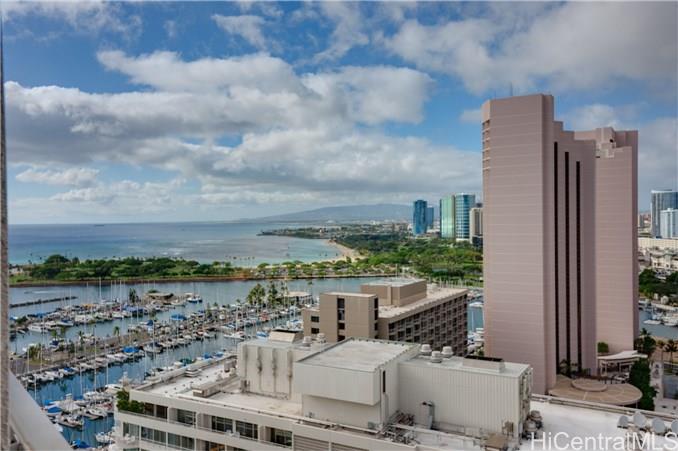 Rarely available 2/2 high floor Aqua Hotel Program unit. The fixed renal income is $4, 700/month. 25 floor is 9 feet high ceiling. Walking Distance to Ala Moana Shopping Center, and Waikiki.