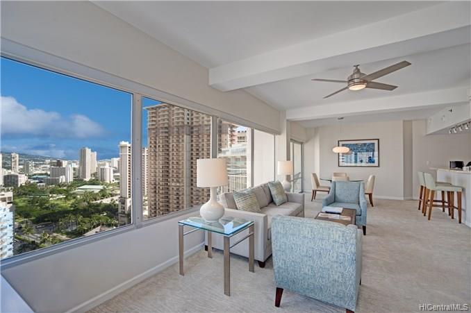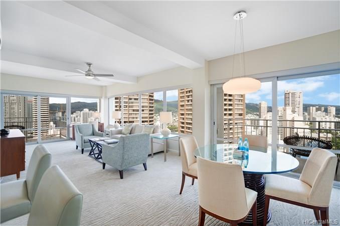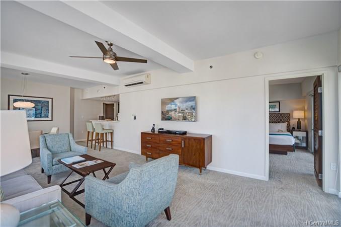 まれに利用できる 2/2 高層階アクア ホテル プログラム ユニット。腎定収入は $4、700/月。25 階は 9 フィートの高い天井です。アラモアナ ショッピング センターとワイキキ徒歩圏内。