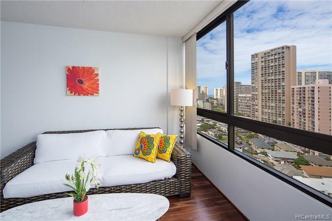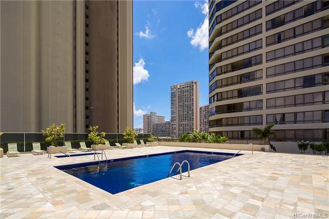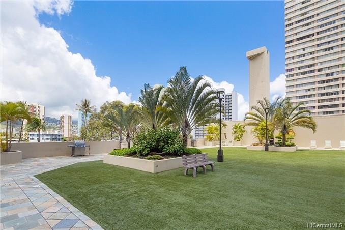アラモアナ、ワイキキ、カハラ、UH に近いロケーション。設備には、テニスコート、プール、パッティング グリーンがあります。安全な建物のロビーでコンビニエンス ストアです。