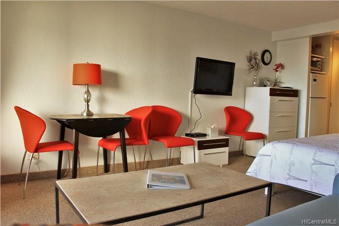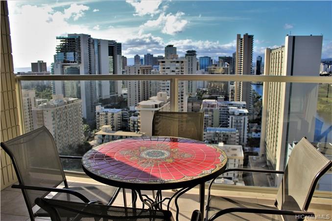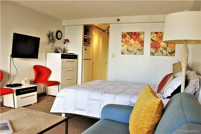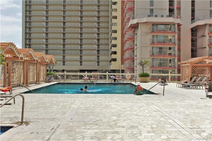 Excellent condition, high floor condo with wonderful views. Watch the outriggers and Friday night fireworks from your extra large lanai. Low main. with amenities galore. great pool deck with bbq’s. The condo is fully stocked and ready to move into or use as an investment