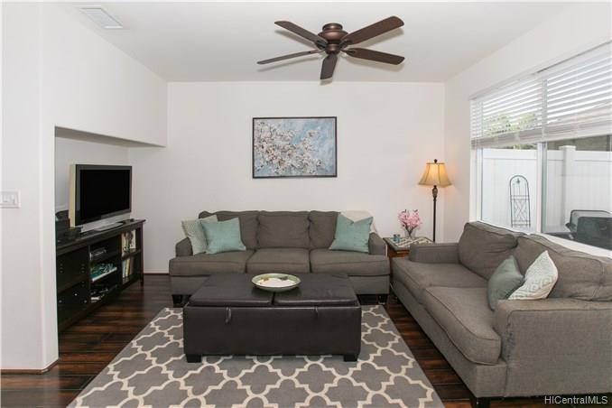3 Bedroom 3 Bathroom Town Home in The Award Winning Community Of Ka Makanaat Hoakalei.This town Home Has A Bedroom and Full Bathroom on The First Floor. Open Kitchen, Family Room, Central AC, Custom Blinds, Hardwood Laminate Floors On The First Floor, Wall to Wall Carpeting Upstairs, Washer and Dryer, Dish Washer, Inclosed Backyard, Landscaped Backyard, Community Swim Club (Swimming Pool, Gym, Tennis Court), Bike Paths, Dog Park and So Much More!