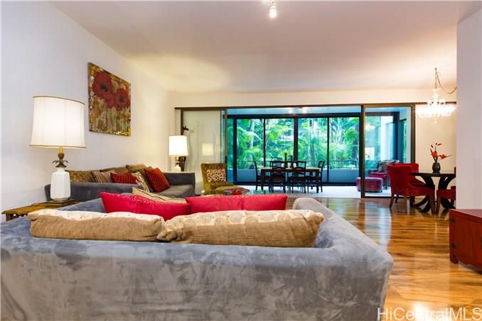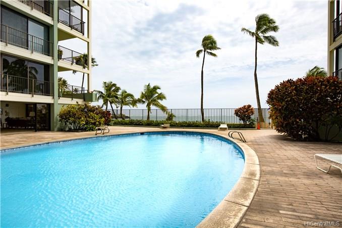 This convenient, ground floor, luxury space, is steps away from the recreation area, oceanfront, salt water, heated pool and exercise area. Throw in some sand, add swaying palms, toss in a little sea breeze and oh, let’s not forget a stunning sunset on the pristine coastline. Find yourself captured by the beauty and charm of The Kahala Beach with next door neighbors the likes of The World famous Kahala Hotel & Resort and Waialae Country Club. The building grounds are romantic and beautiful in a setting of lush gardens, winding Koi ponds. Take a daily stroll to nearby Kahala Mall that features theaters, banks, a mini food court, Whole Foods and more. THE PROPERTY IS LEASEHOLD. THE LEASE EXPIRES IN DECEMBER 2027 AND IS NOT OFFERED FOR SALE
