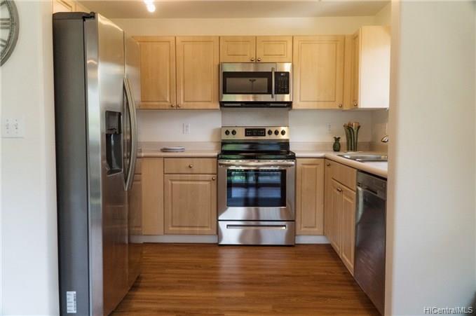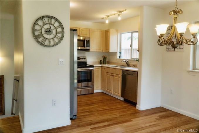 Come and see this beautiful cozy townhouse located in Kai Nani at Makakilo a desirable neighborhood. This is a turn-key home that has 3 bedrooms 2 full baths. Kitchen has an open extended feel to your Lanai/Patio with peek-a-boo ocean views. Kitchen includes Brand new, never been used stainless steal appliances, Split AC in Living and Master room. Close to Target, Costco, Wal-Mart and local supermarkets.