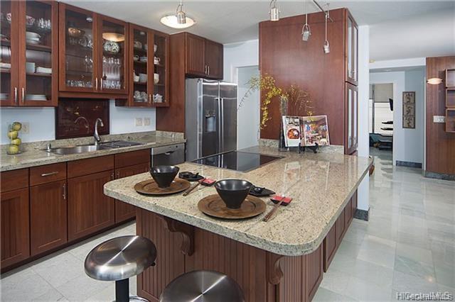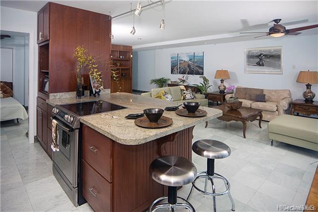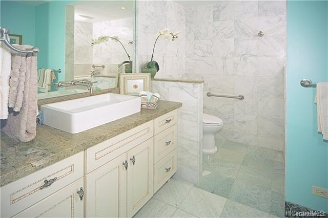 An Oceanfront “Jewel” on the Gold Coast, 2/2 Kainalu, Apt. 6B, a Direct Ocean Front. Completely gutted and exquisitely, totally renovated in 2009. It reflects attention to detail throughout; tasteful appointments with ocean blue Italian marble tiles. Cherry wood cabinetry, travertine and marble throughout the bathrooms and more! It has not been lived in or rented out. It looks and feels like new and comes fully furnished! Parking is under the building, extra storage. Beautiful beach and brand new seawall fronting project.